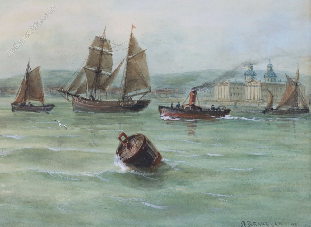 Biography: John Branegan was born in 1840. Little is known of Branegan, but it would appear that soon after his marriage he settled in London making his living as a painter, residing for some time at 118, Stanhope Street and later at 9, St. Thomas' Gardens. It is probable that he moved to Whitby about 1880 or 1881 as he exhibited a number of pictures in the Yorkshire Fine Art Exhibition at Leeds in 1882 and the following year in the Yorkshire Fine Art and Industrial Institution Exhibition in York.