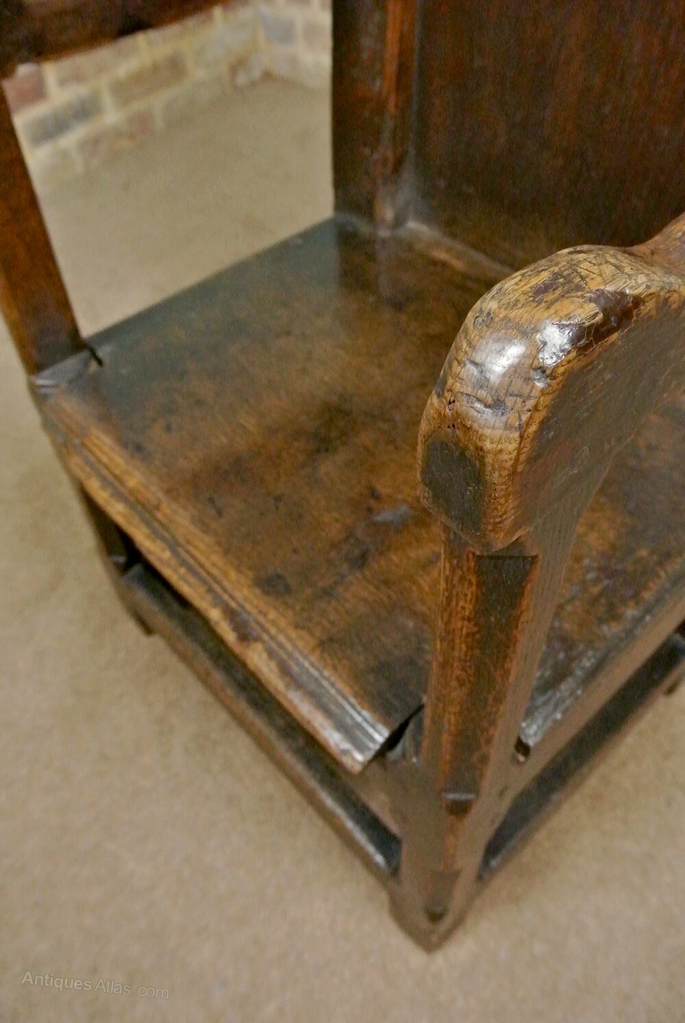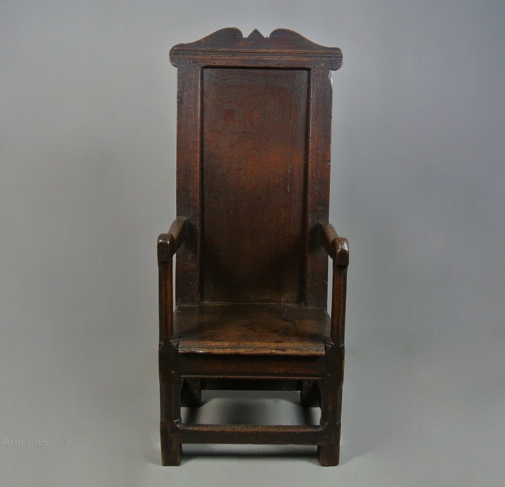 An early and extremely rare original oak Great chair (Wales c. 1620) made for the child of a very wealthy household.