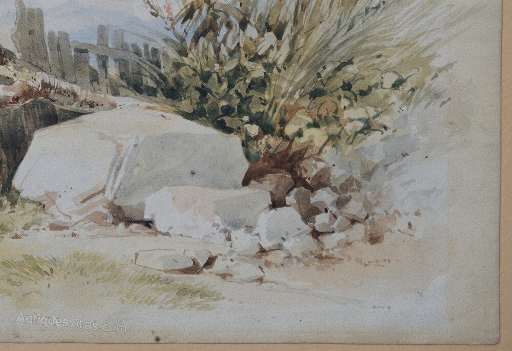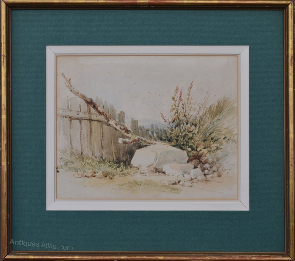 John Middleton (1827-1856), Attributed. Study of a Stone Boulder with Foliage and a Fence