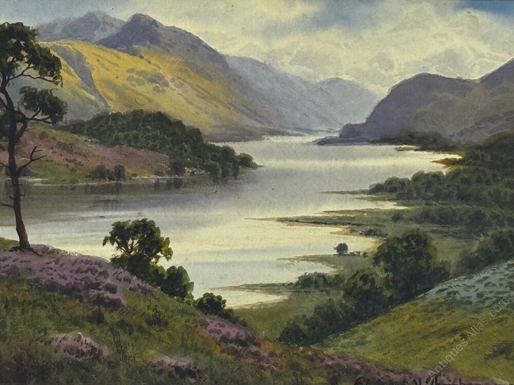 Edward Horace Thompson was born in Seaton, Cumbria, in 1879 and became renowned for his evocative Lake District views. After early employment in a factory office, he dedicated himself to painting full-time, establishing a studio in Cockermouth. His works are now held in private collections across the world, exhibited at Gladstone & Patterson, and sold at reputable auction houses, with examples achieving up to $4,605 USD. Thompson is remembered as one of Cumbria’s most accomplished landscape artists of the early 20th century.