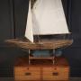 The yacht retains its cloth sail, rigging, and mast, displaying age-related wear consistent with use and time, which only adds to its authentic maritime character. Standing proudly on a later wooden stand, it makes a striking decorative piece with strong nautical appeal.