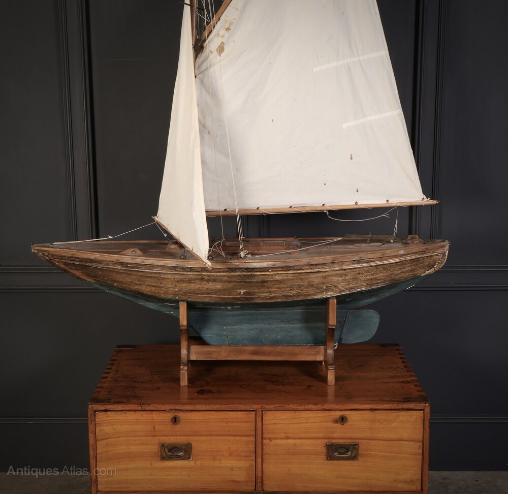 A charming antique pond yacht dating to around 1900, complete with its original fittings and wonderful patina.