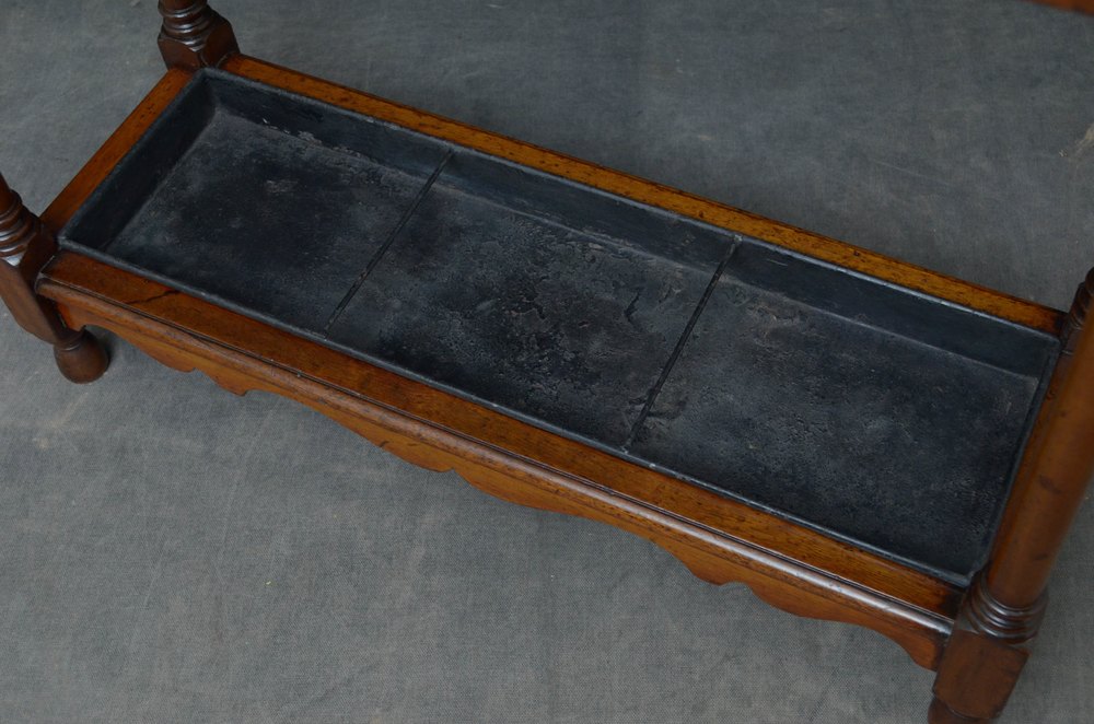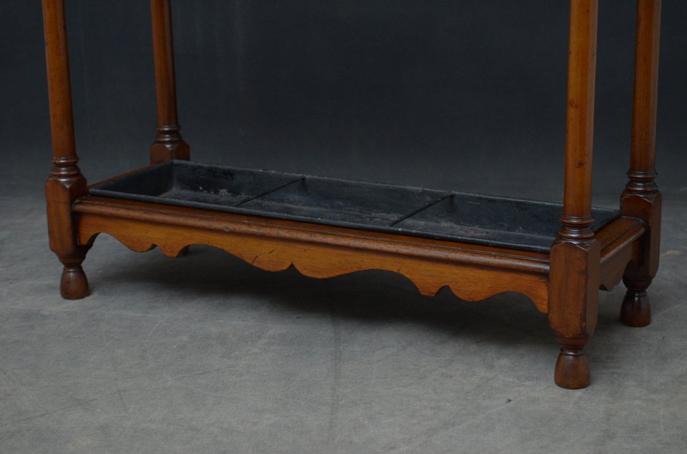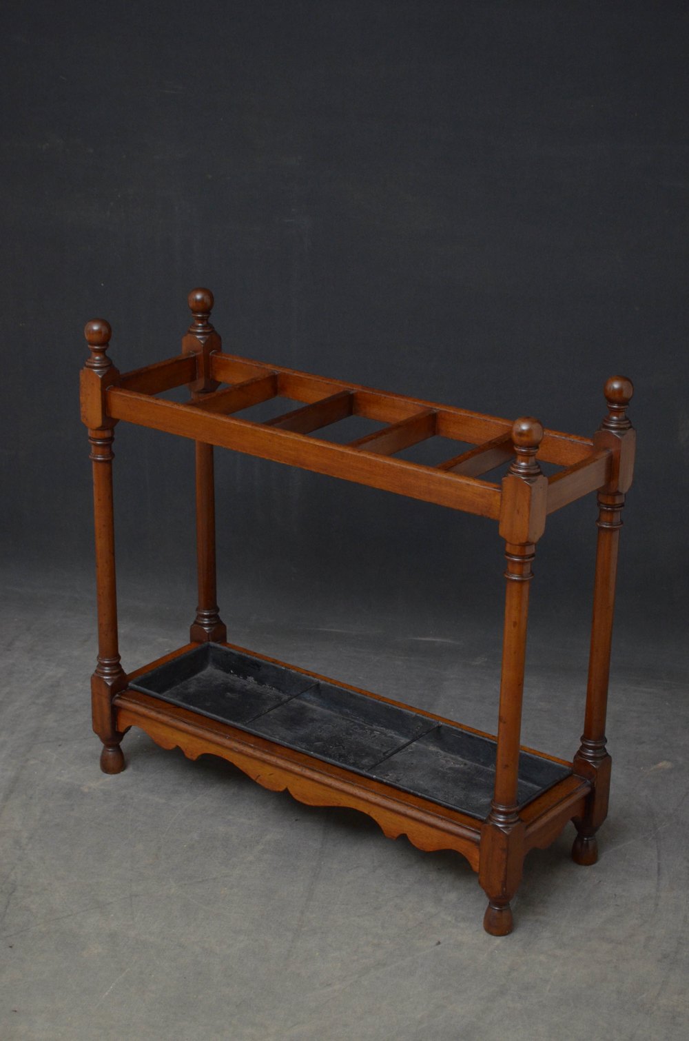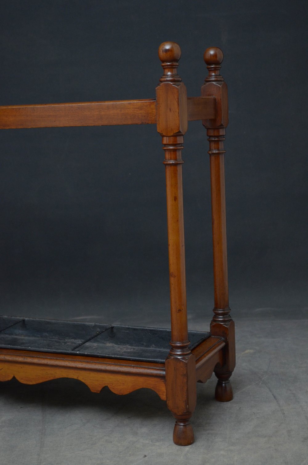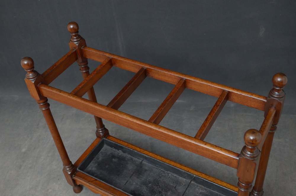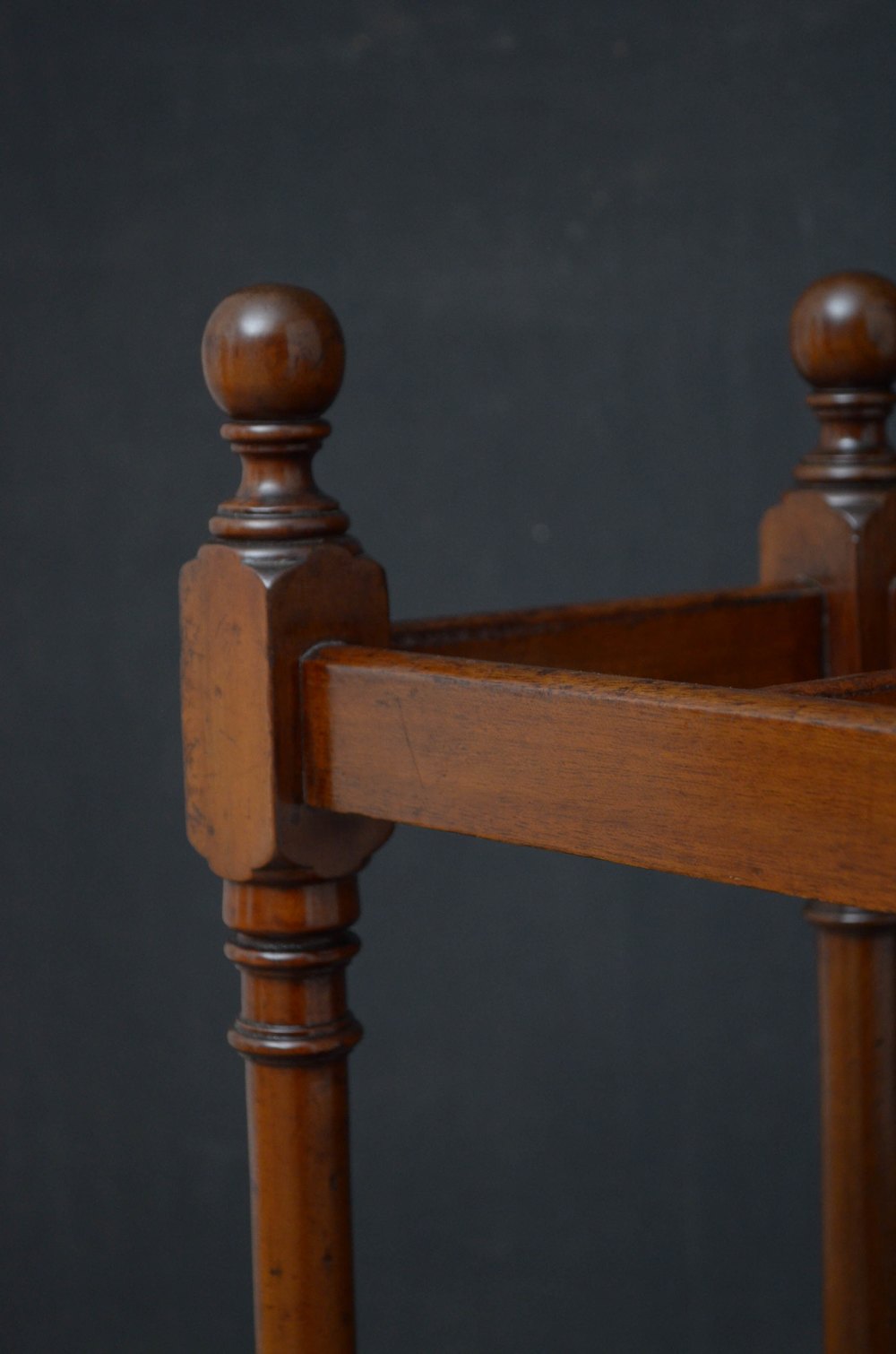 Sn5048 Late XIXth century mahogany umbrella stand or walking stick stand with five compartments flanked by turned finials, turned uprights enclosing removable drip tray united by shaped apron. This antique umbrella standing is in home ready condition. c1890
