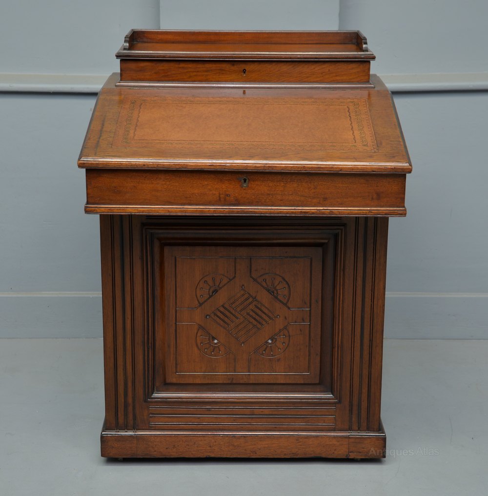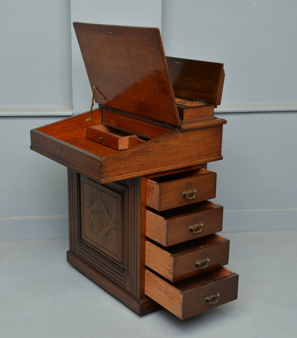To the right side of the davenport are four mahogany lined drawers with original brass handles. All brass locks and escutcheons are present.