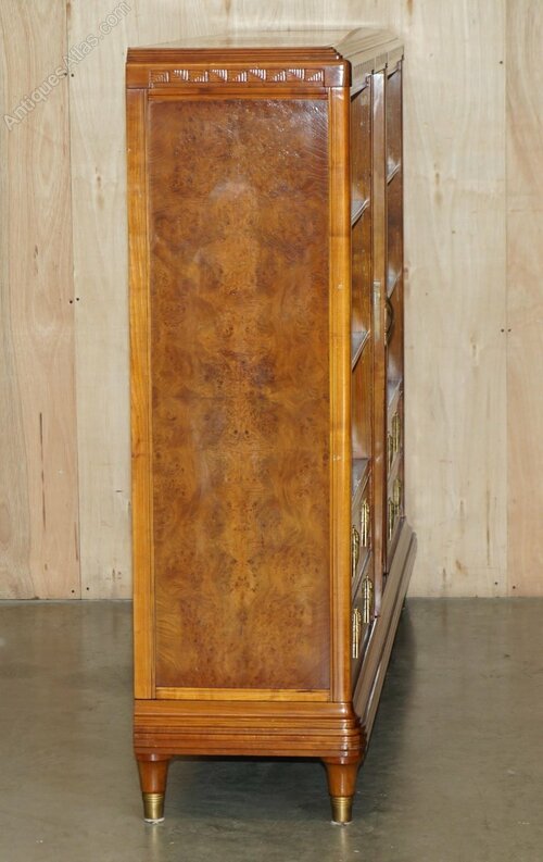 This piece is in sublime condition throughout, it is really a spectacular piece and offers huge amounts of storage. The cabinet comes with an oak frame and lots of burr and burl walnut panels, the handles are gold gilt brass and have a serial number and name to back which reads L Jallot with the letter C in a circle, the handles on this cabinet are of Egyptian scarab beetles, they are the finest I have ever seen