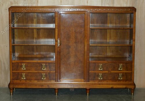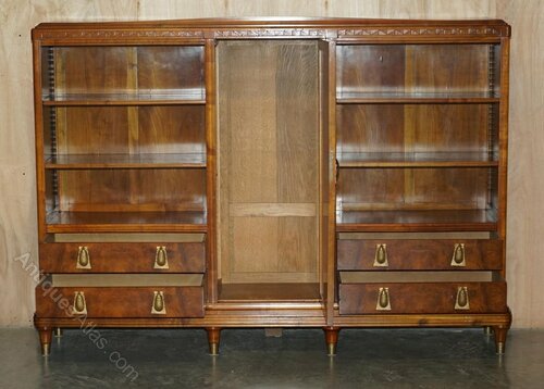 This is as mentioned part of a set, I have in total a pair of tub armchairs, a very large double sided desk, two very large library cupboards with one with drawers one without, all in Walnut & Burr Walnut, this sale is for the piece detailed above and pictured only with the other lots being listed under my other items and not included in this sale. The handles on the bookcases are stamped or signed L Jallot, I will include some information on the great man below