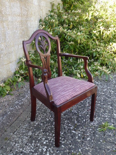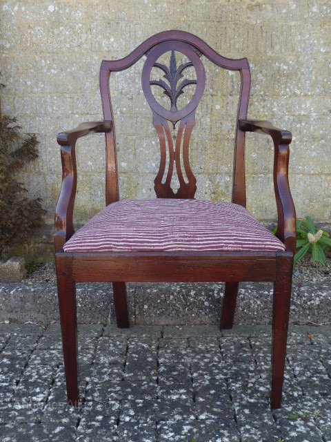 A superb carver circa 1790 made from a beautiful mahogany with an unusual wheatsheaf design. The drop-in seat is in excellent condition having been newly re-covered.