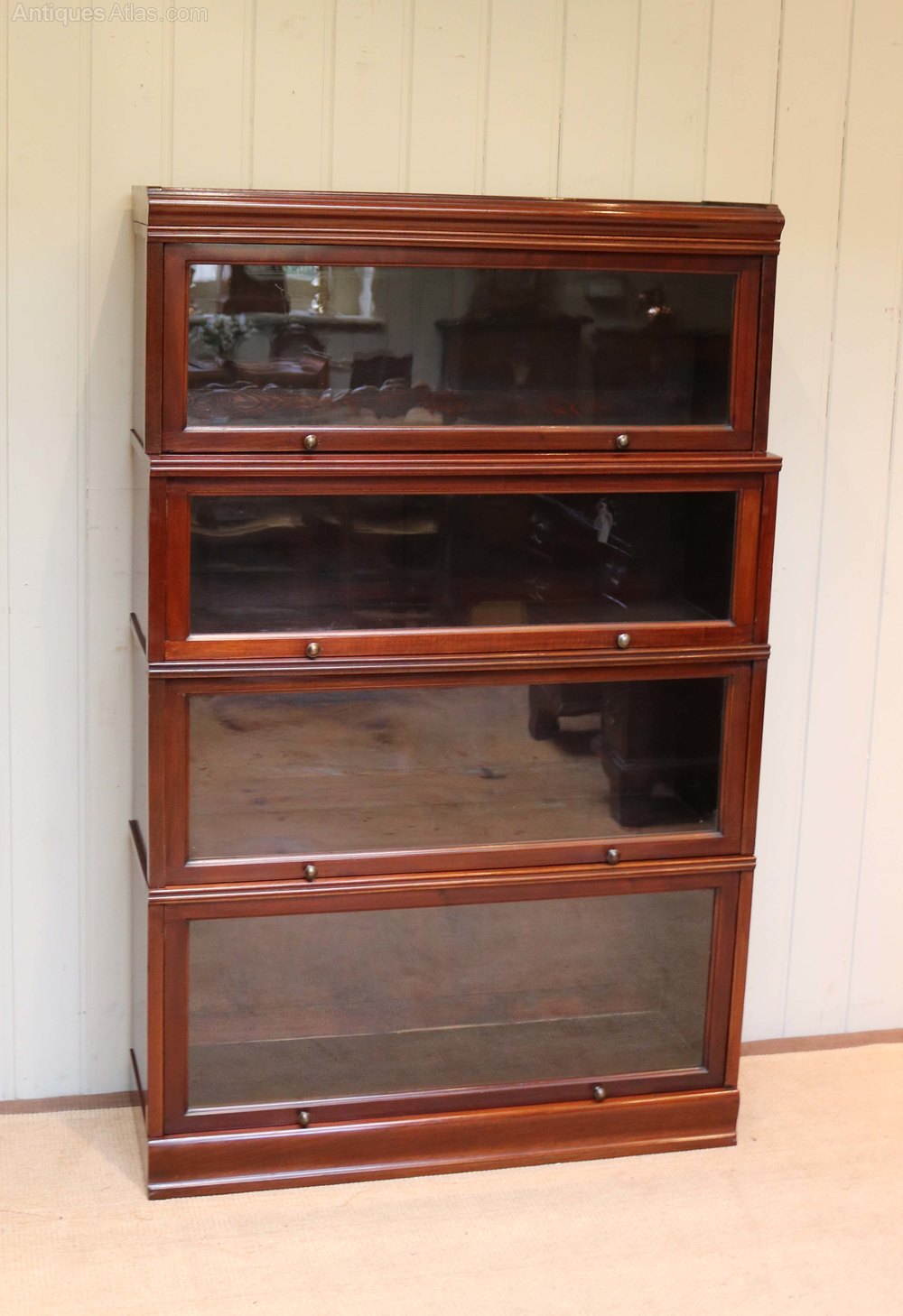 Mahogany globe wernicke style bookcase having four graduated sections with up and over doors raised on a plinth base