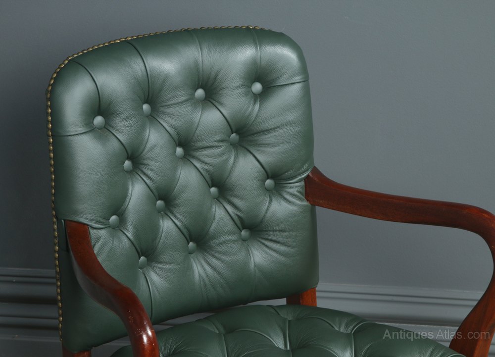Mahogany Green Leather Revolving Office Chair