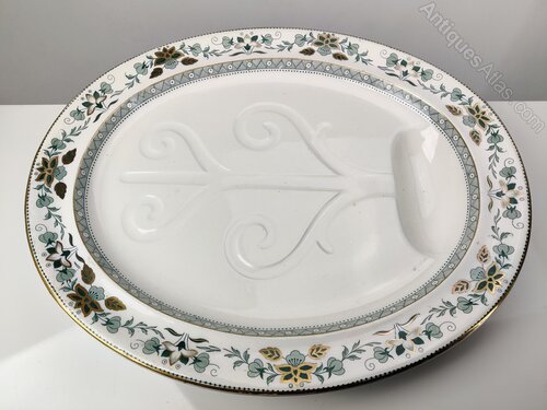 Smell the Sunday roast, or Christmas turkey... This beautiful large vintage Wedgewood meat plate is sure to 'meat' your needs... Good marks to the base with a lovely green and gilt foliage pattern and gilt edging. In lovely condition with no chips or cracks, this platter would grace any dining table!