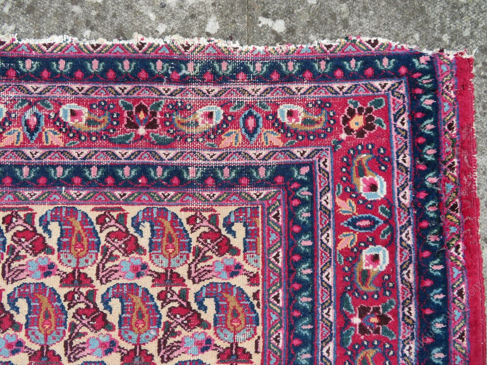 DOES HAVE LOW PILE WITH WEAR. END LOSSES. BIT OF SIDE CORD LOSS IN PLACES. BUT A CLASSIC PERSIAN RUG FOR JUST £295. U.K POST £20.