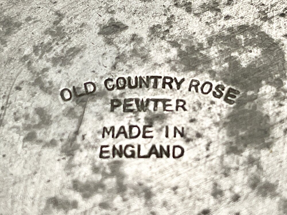 The underside of the base is stamped Old Country Rose Pewter and Made In England.