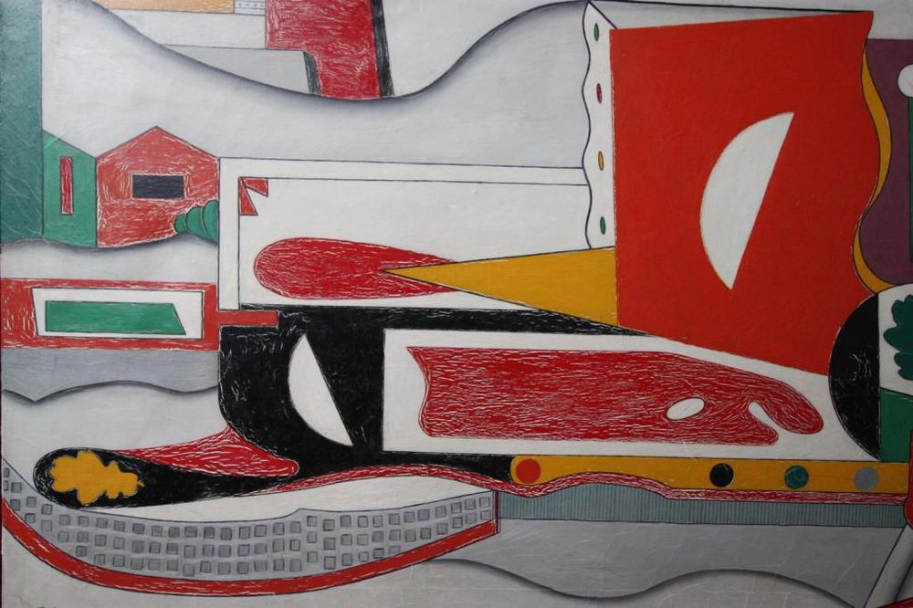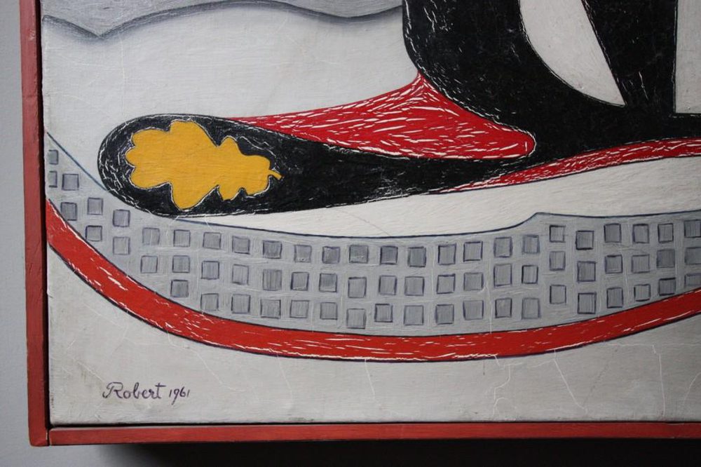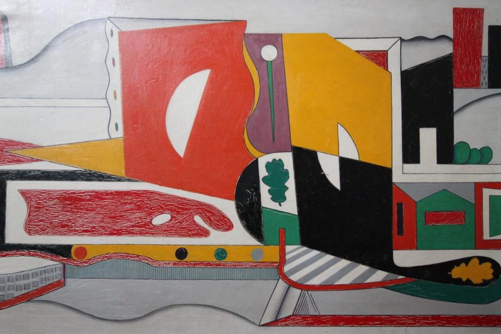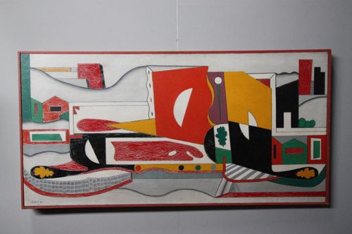 A good, large size makes this colourful 1960' oil painting a striking piece of wall decoration.