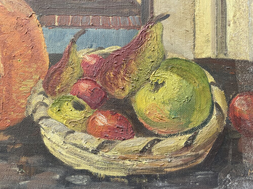 A very attractive original still life painting of fruit by a window. The painting is signed by the artist M.S. Thomson, I have not been able to find out much about the artist. But they are clearly very talented and would be an interesting research project.