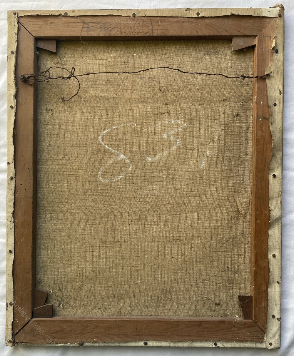The painting is an oil on canvas and is 56cm x 46cm and is offered unframed.