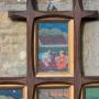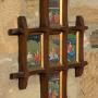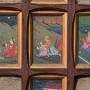 The solid oak cruciform frame is beautifully made with each painting having a gilt wood slip. Overall this measures 44 cms by 35 cms.