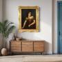 This oil on canvas painting depicts Medea, one of the most tragic and dark figures in Greek mythology, a cruel and passionate heroine associated with the myth of the Argonauts. A sorceress and priestess with extraordinary powers, she falls madly in love with Jason and helps him conquer the Golden Fleece, betraying her homeland. During their escape, she kills her brother to slow down her pursuers and later, in a vengeful rage to punish Jason, even kills their children. Medea is depicted in the moment before the crime, her gaze fixed on destiny and her sword clutched in her hand, at the moment of greatest psychological drama.