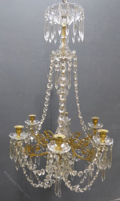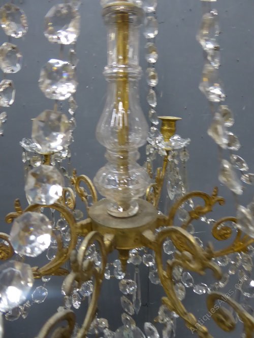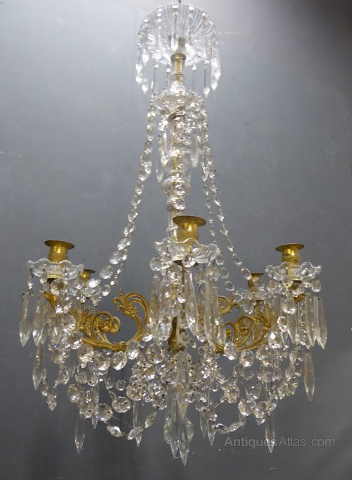 French Gilded Crystal 6 Light Antique Chandelier