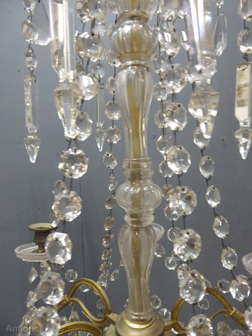 Ref 7349 - 6 arm brass Napoleon III antique French chandelier with original clear crystals. For candles or can be wired. Circa 1860.