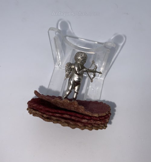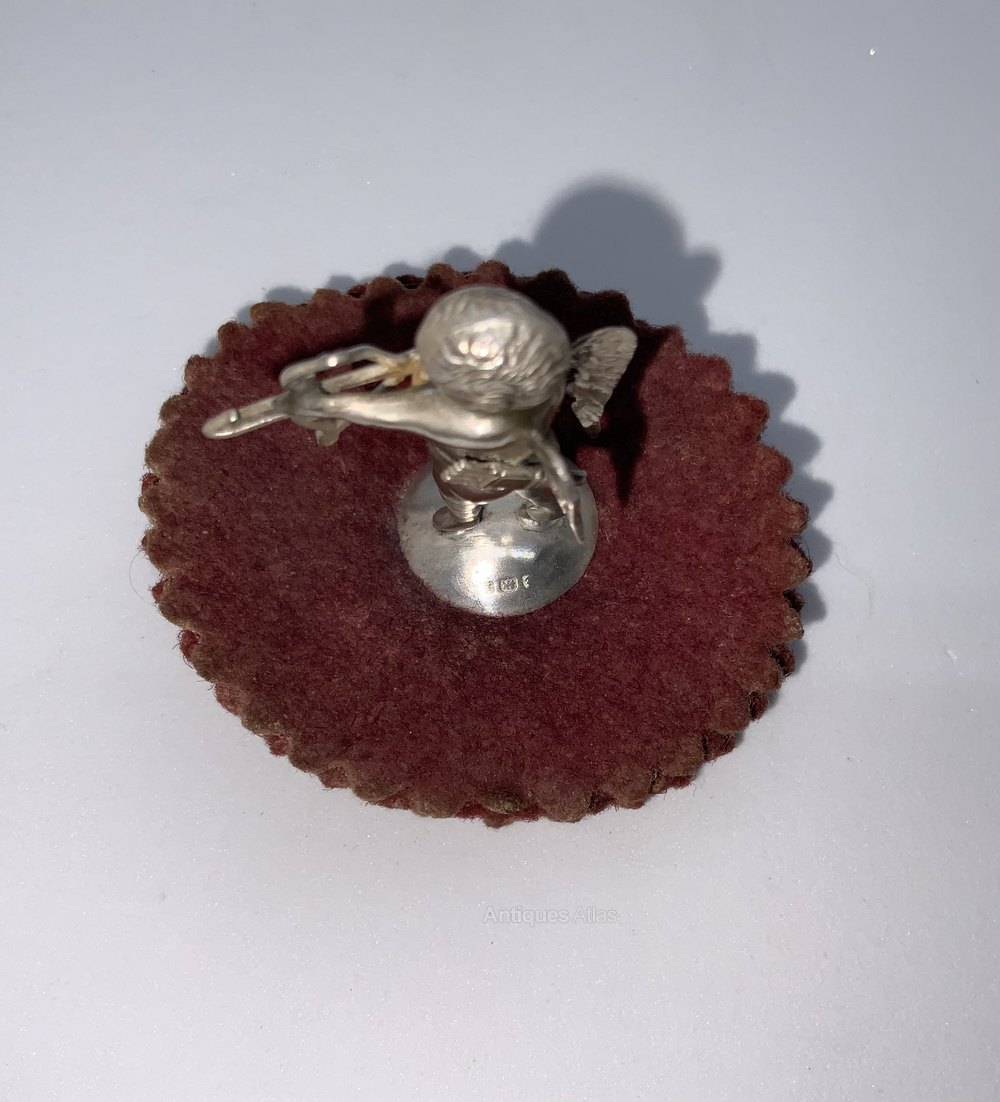 The cherub is silver and marked Birmingham circa 1900, the date letter is partially worn.
