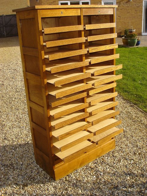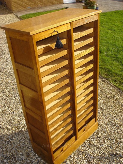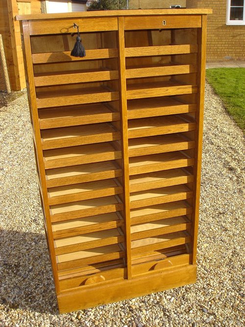 For sale a fully restored English double tambour filing cabinet. Circa 1930's