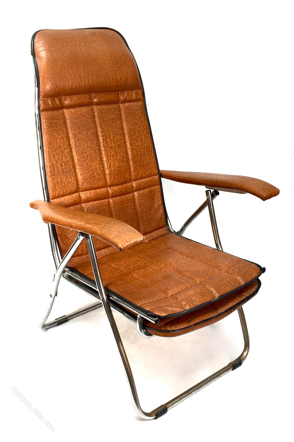 Chrome framed with a faux brown leather covering.