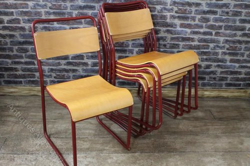 These vintage ‘Redro’ retro stacking chairs are timeless pieces of classic and vintage industrial antique furniture.