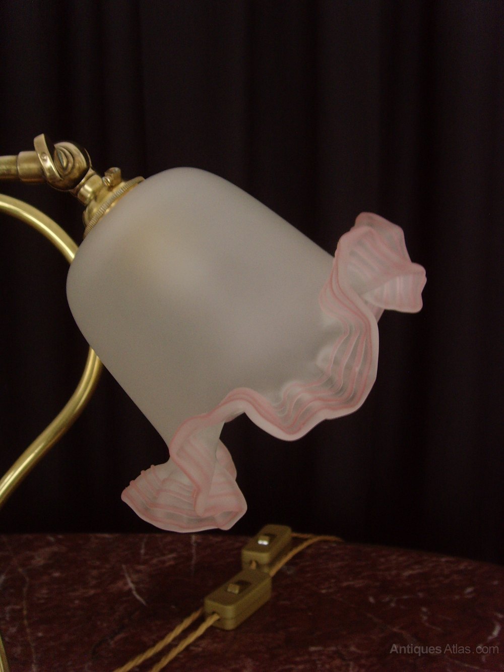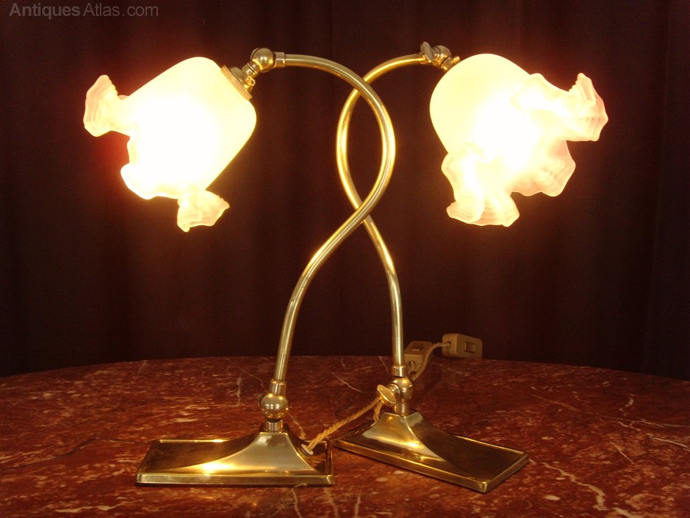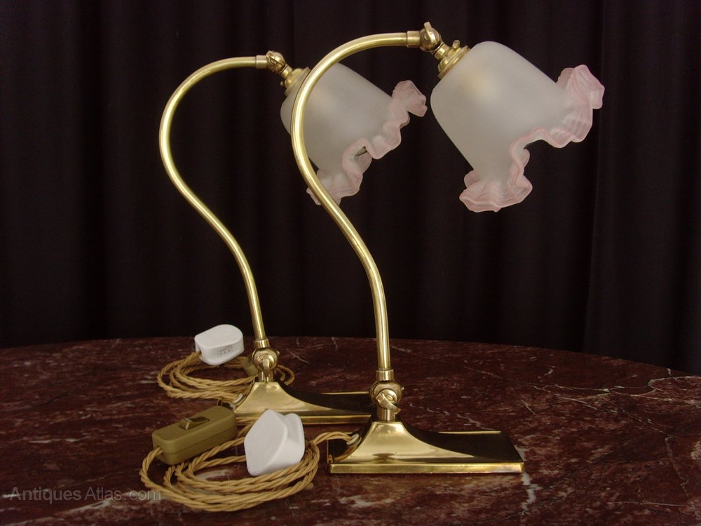 We are offering for sale this attractive pair of brass adjustable Desk Lamps and frilly glass shades, which are early twentieth century in origin.