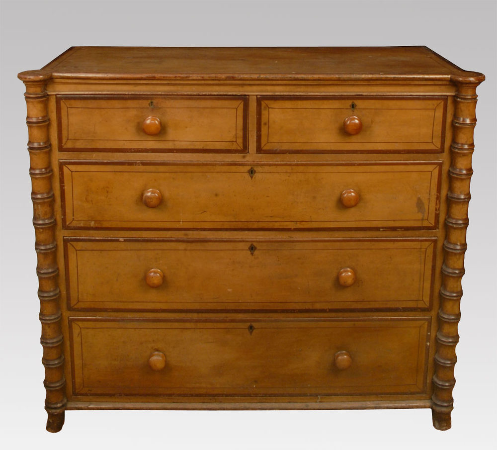 Painted And Faux Bamboo Pine Chest Of Drawers