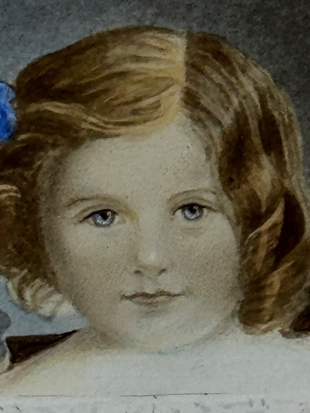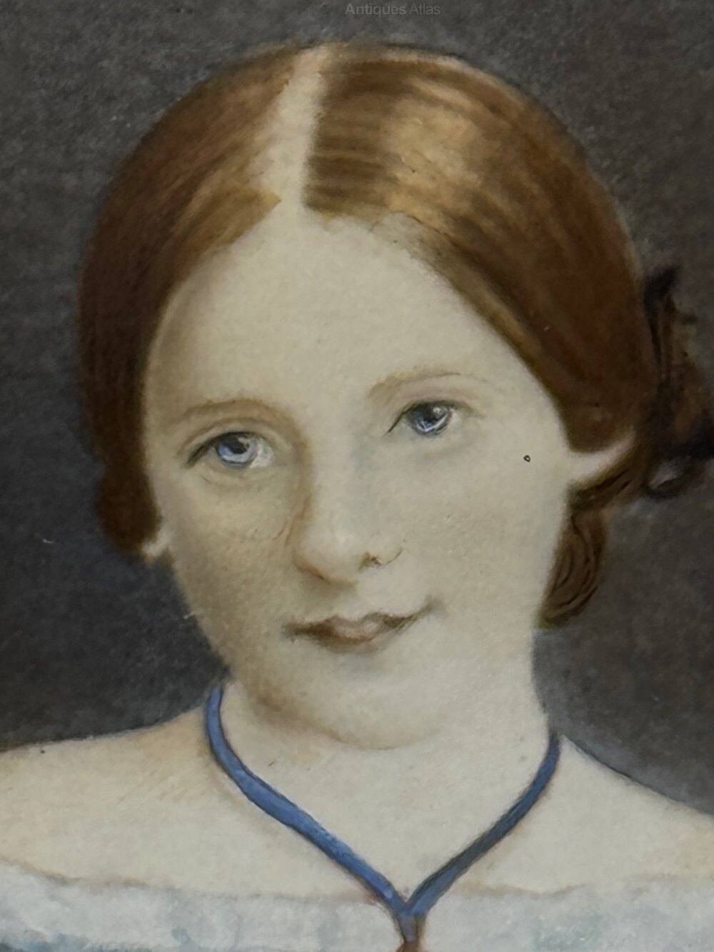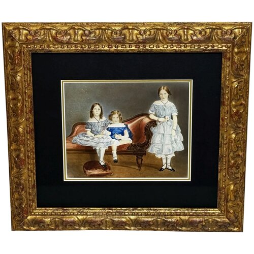 Although apparently unsigned, the portrait’s refined draughtsmanship and sentiment place it confidently within the Circle of William Egley (1798–1870). Egley, a London-born painter, exhibited regularly at the Royal Academy and British Institution and was widely admired for his intimate watercolour group portraits of children and family life.