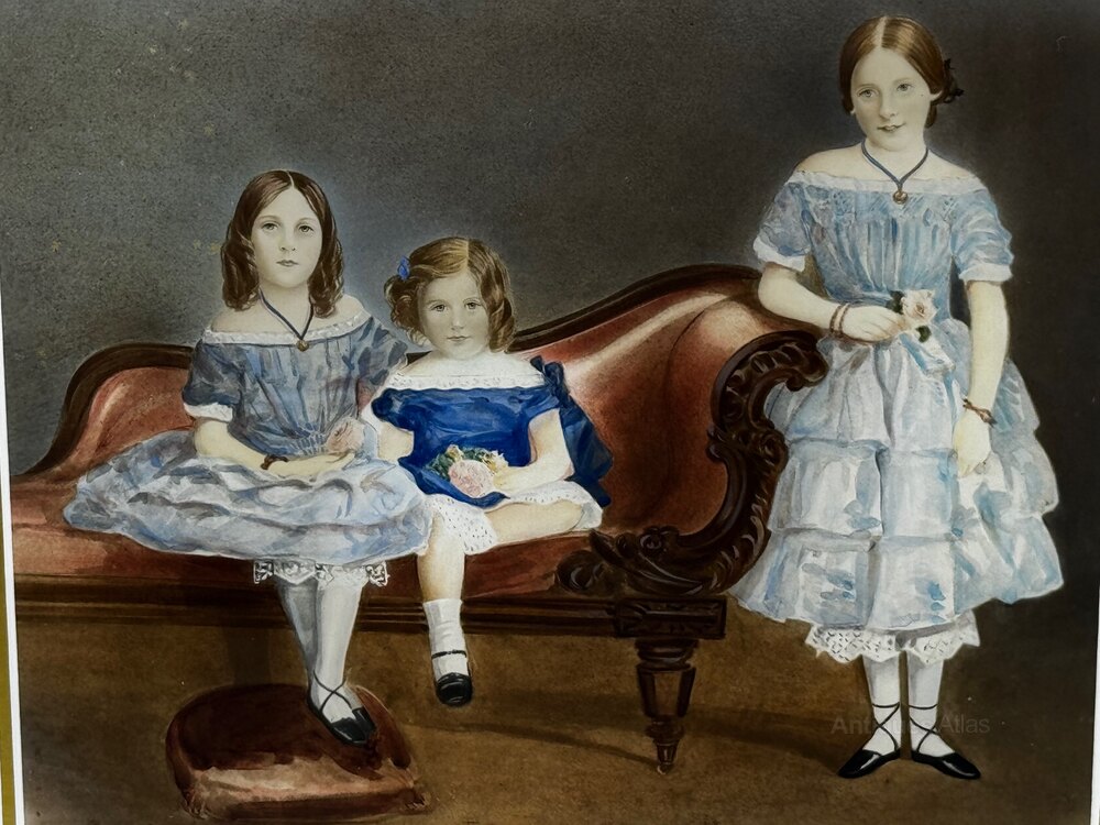 The sitters are the three daughters of Louisa Charlotte Devonsher (née Cooke) and her husband Abraham Devonsher of Cheltenham: