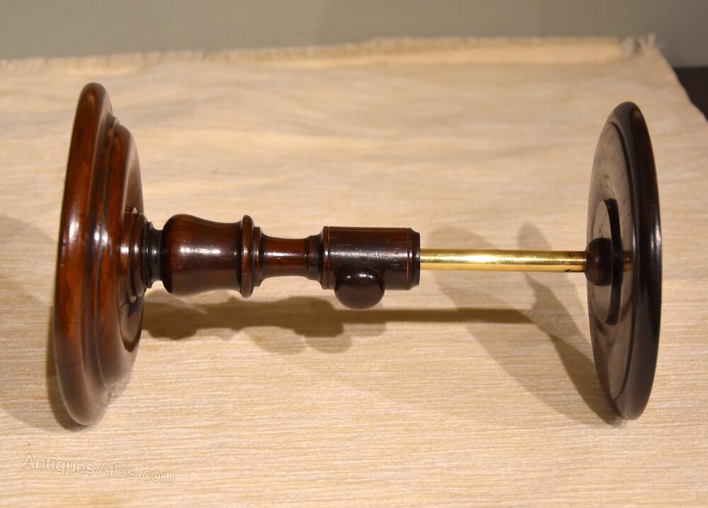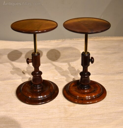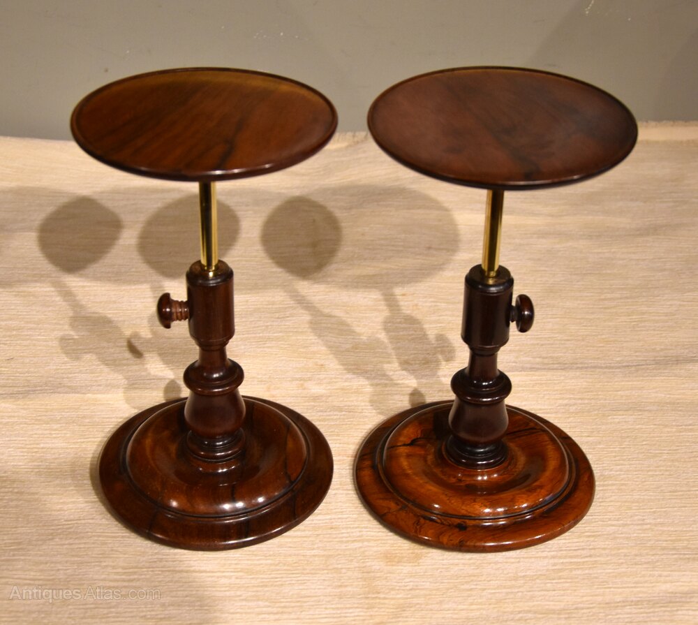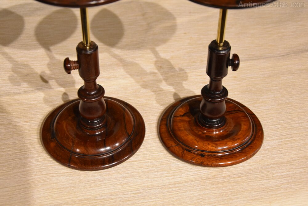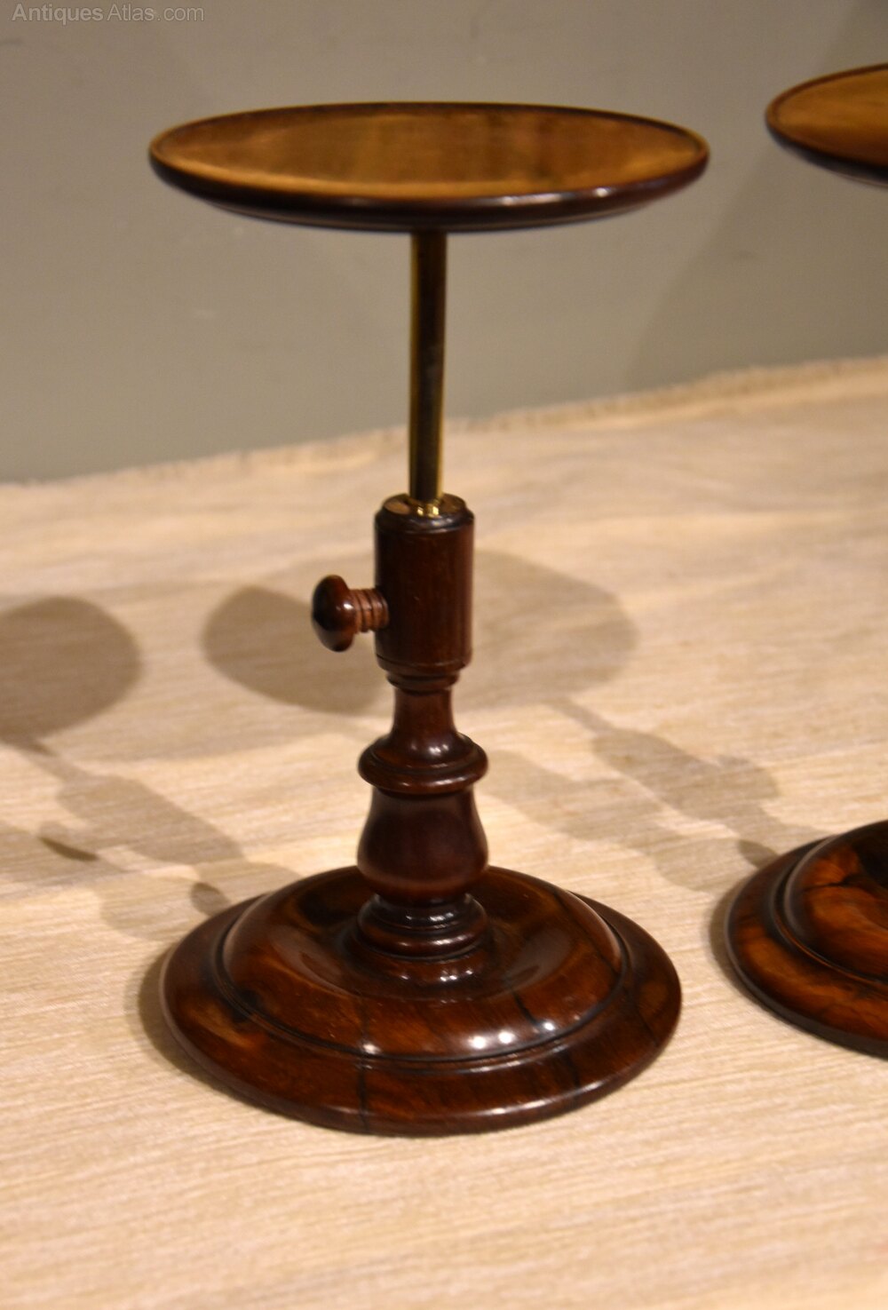 A good pair of early 19th century rosewood and brass adjustable candlestands with weighted bases c1820