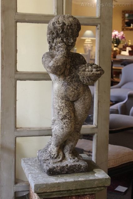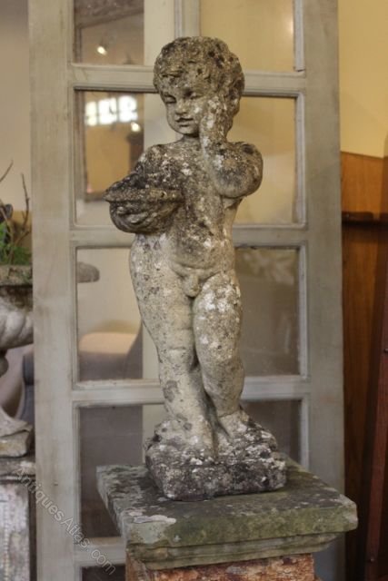 Pair early 20thc of Reconstituted Cherubs on Cast Iron