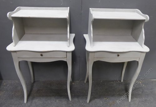 Ref 7044 - Pair of worn grey painted French bedside cabinets with single drawers. Circa 1900.