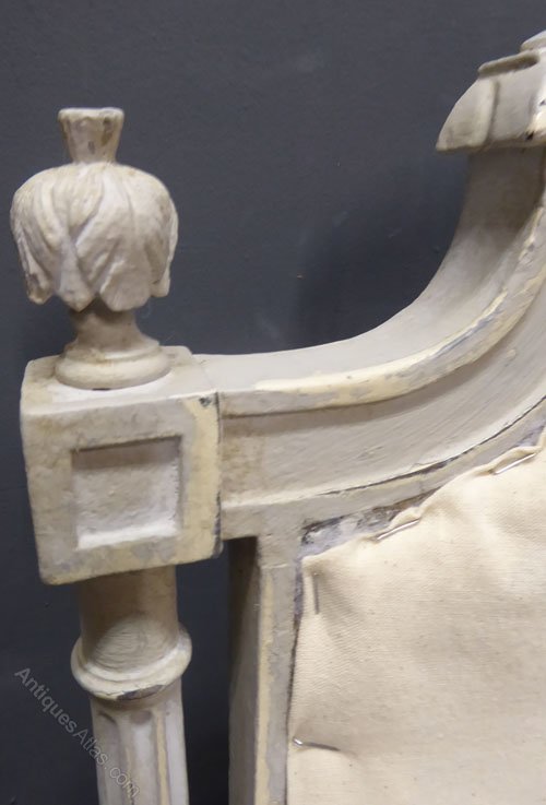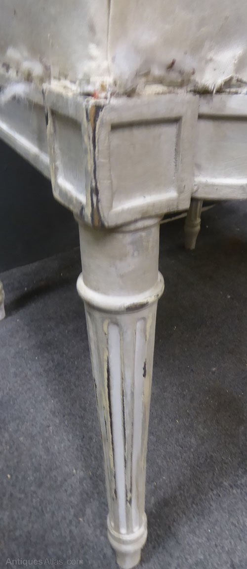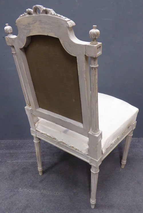 Ref 7433 - Pair of worn grey painted Louis XVI style antique French side chairs ready for recovering. Circa 1900.