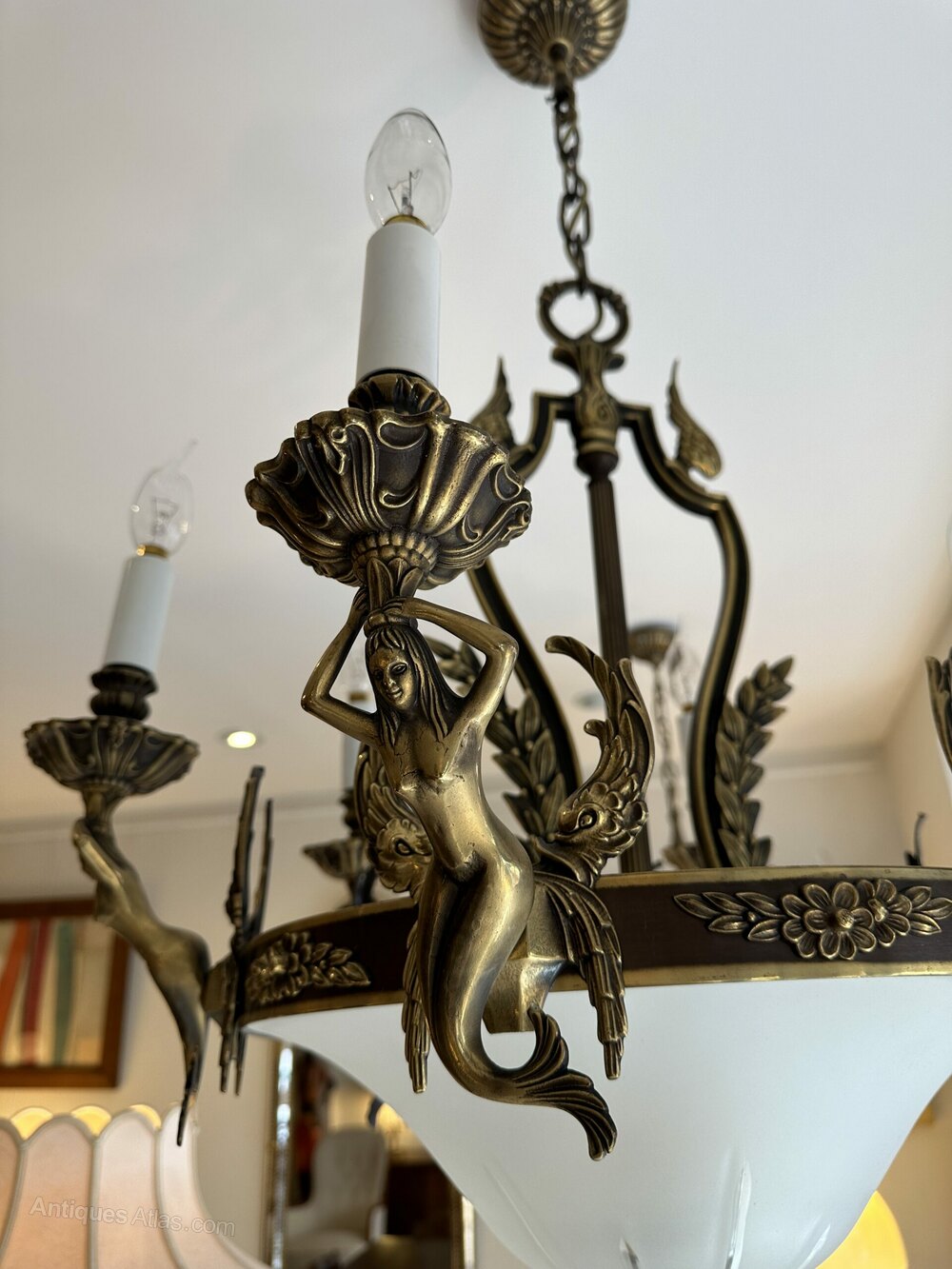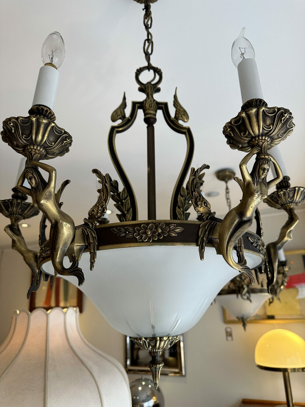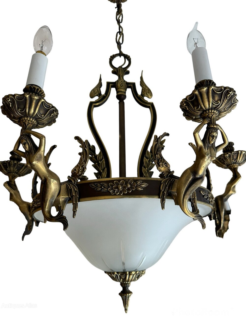 The quality is superb, they are made from patinated brass and each have a glass domed lower section. They are adorned with mermaids, wings and floral motifs, they are an impressive size yet not too imposing.