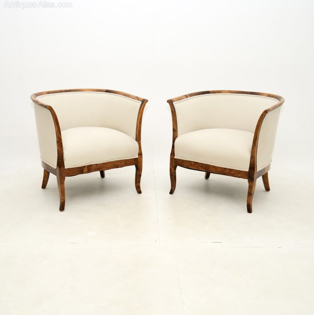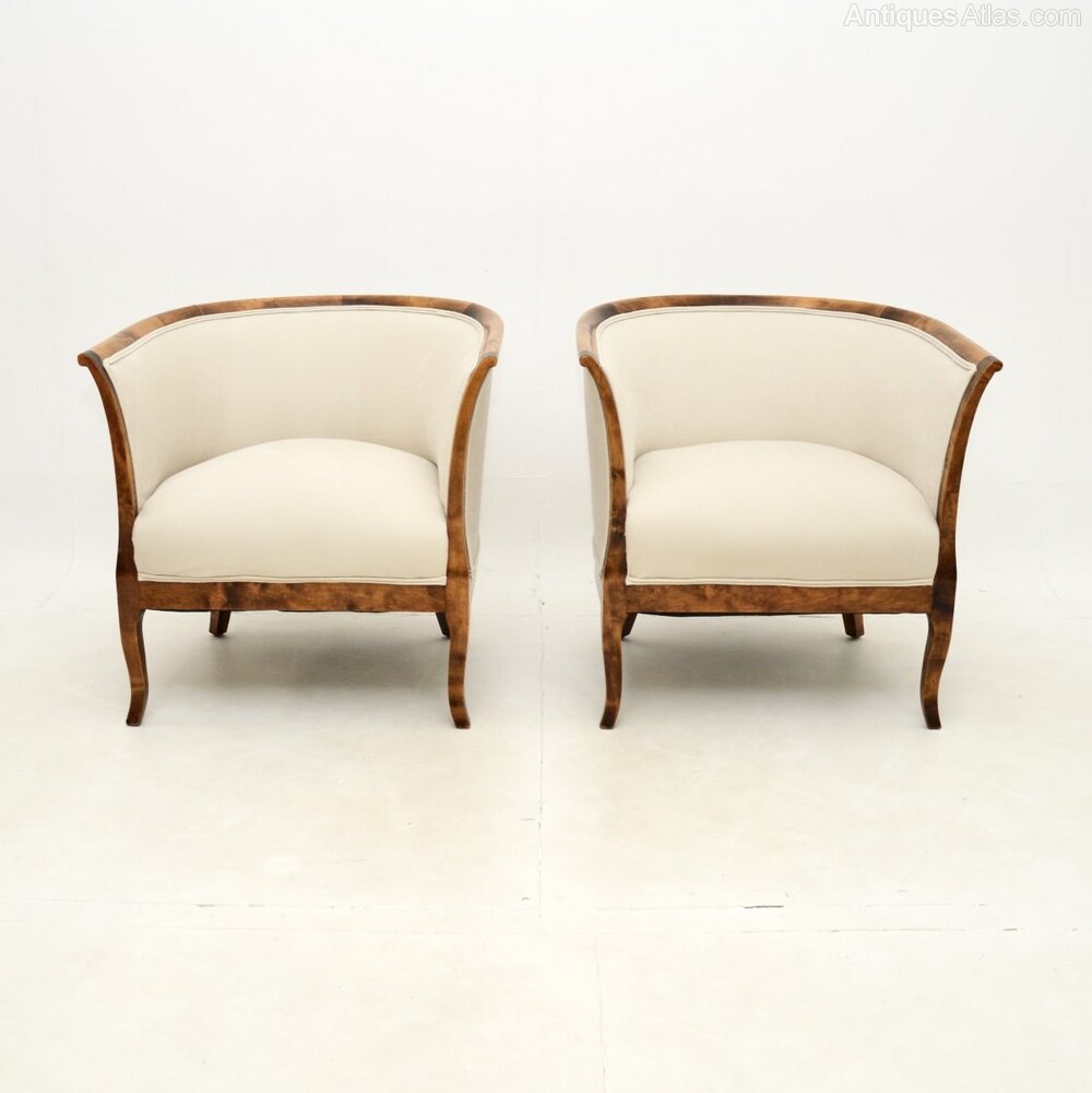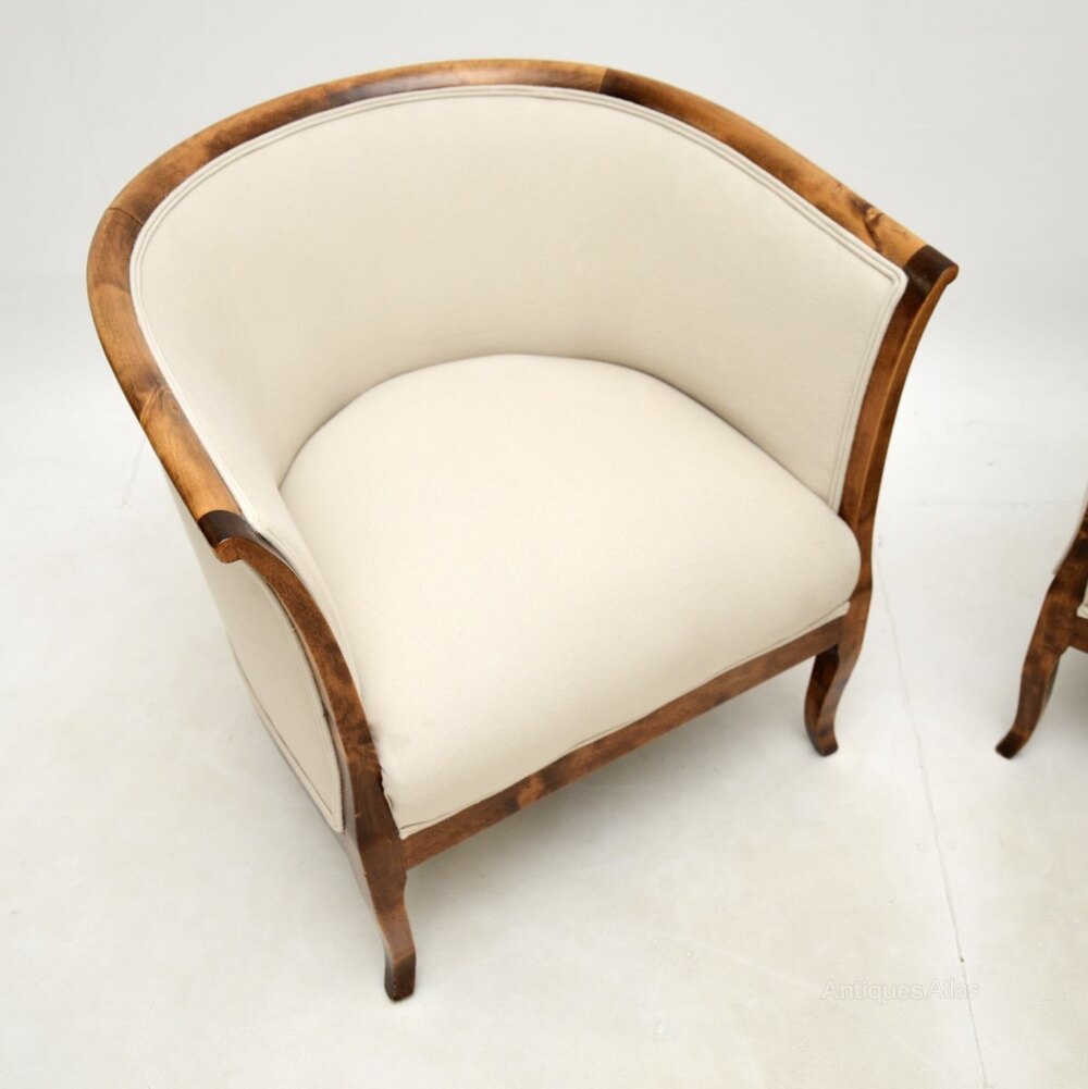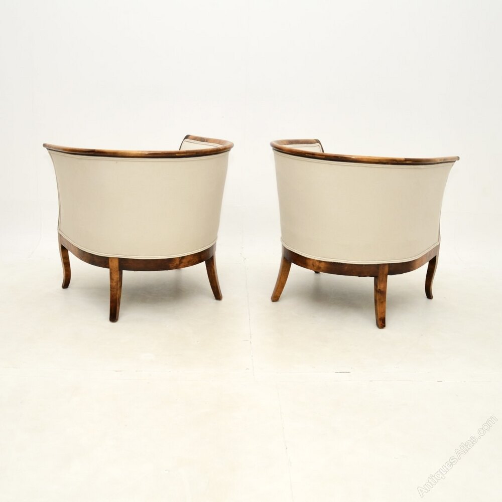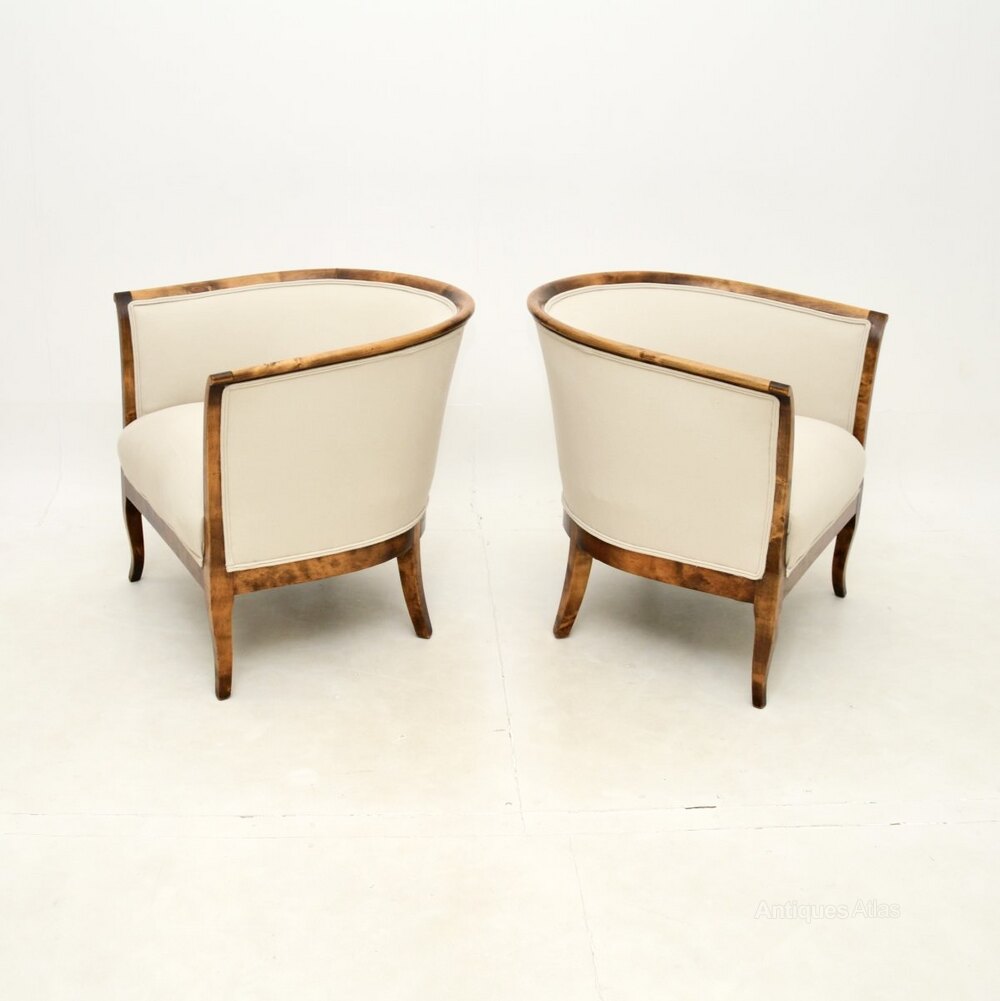 A stylish and extremely well made pair of antique Swedish satin birch armchairs. They were recently imported from Sweden, they date from around the 1890-1910 period.