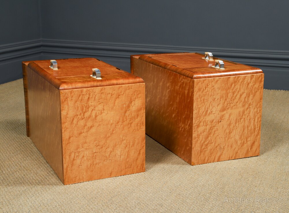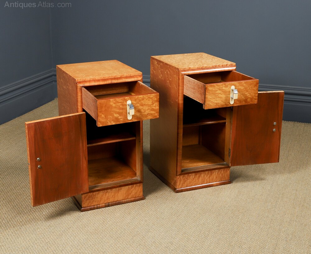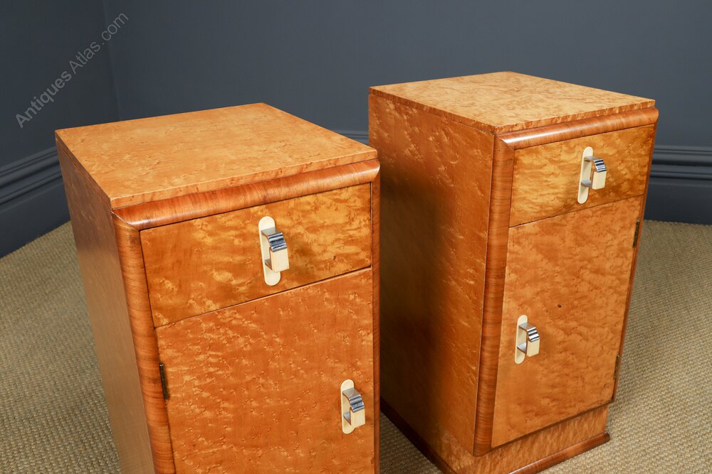 Pair of Art Deco Birds Eye Maple Bedside Tables