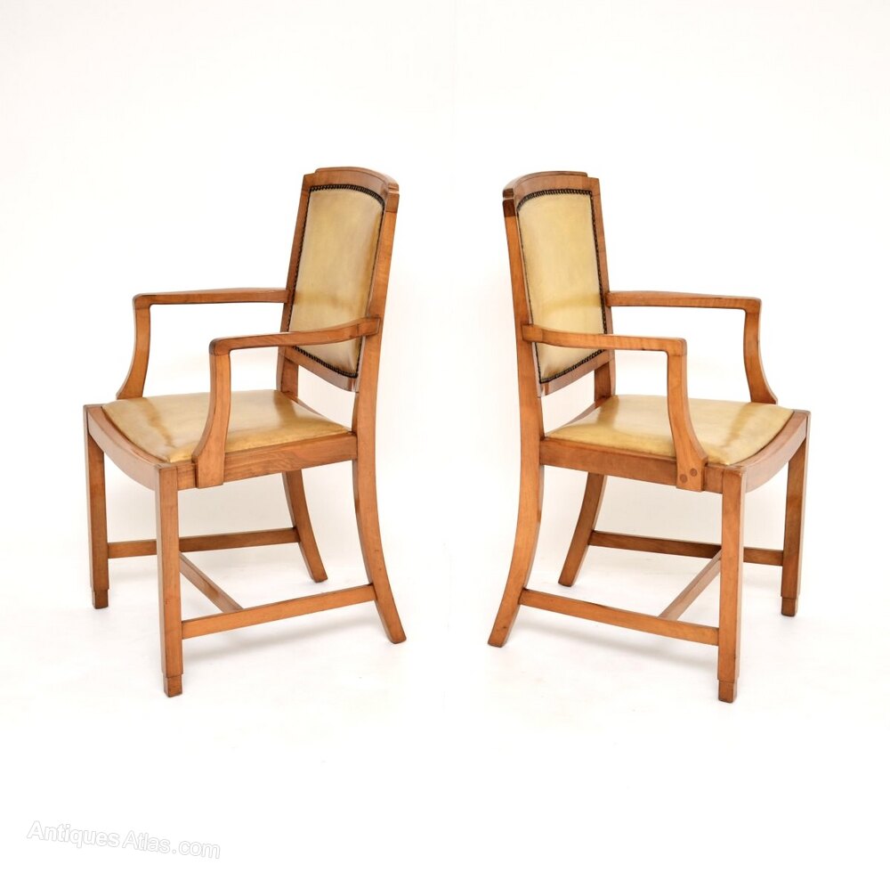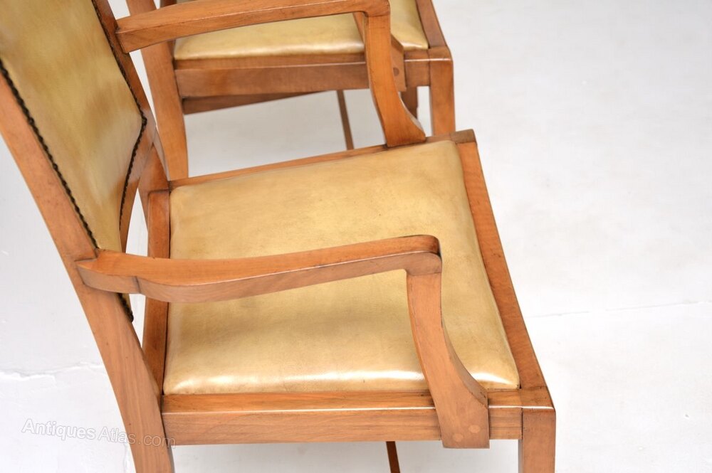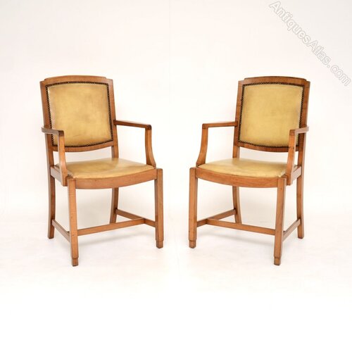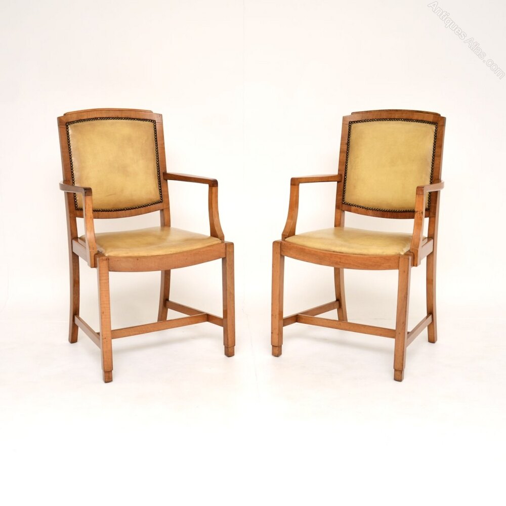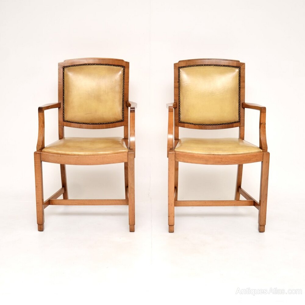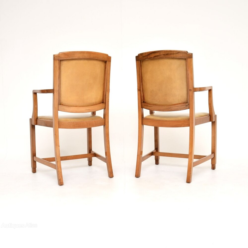 A smart and stylish pair of Art Deco walnut and leather carver armchairs. They were made in England, they date from the 1930’s.