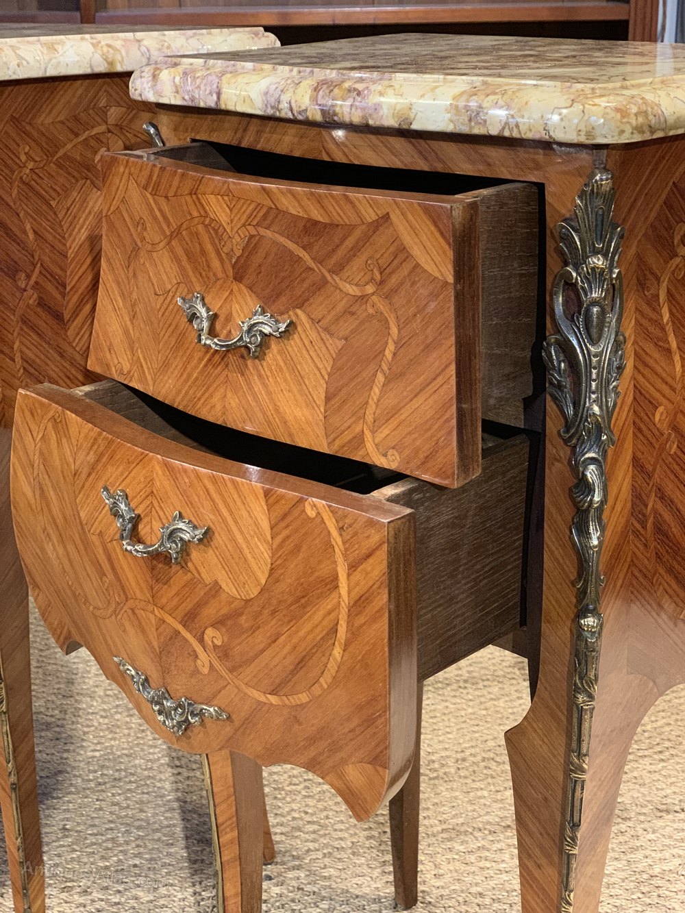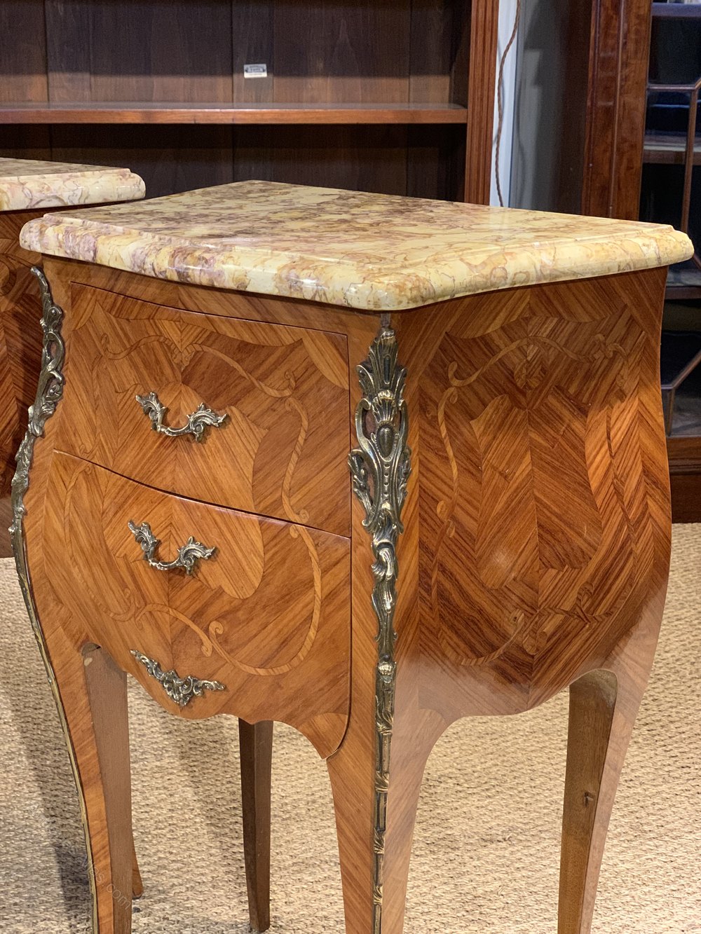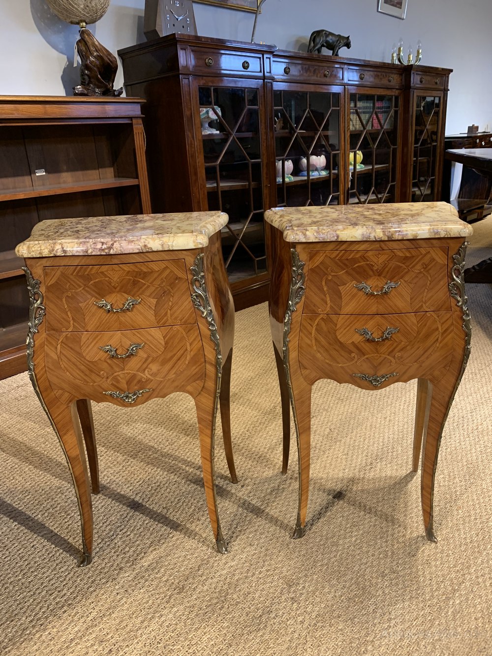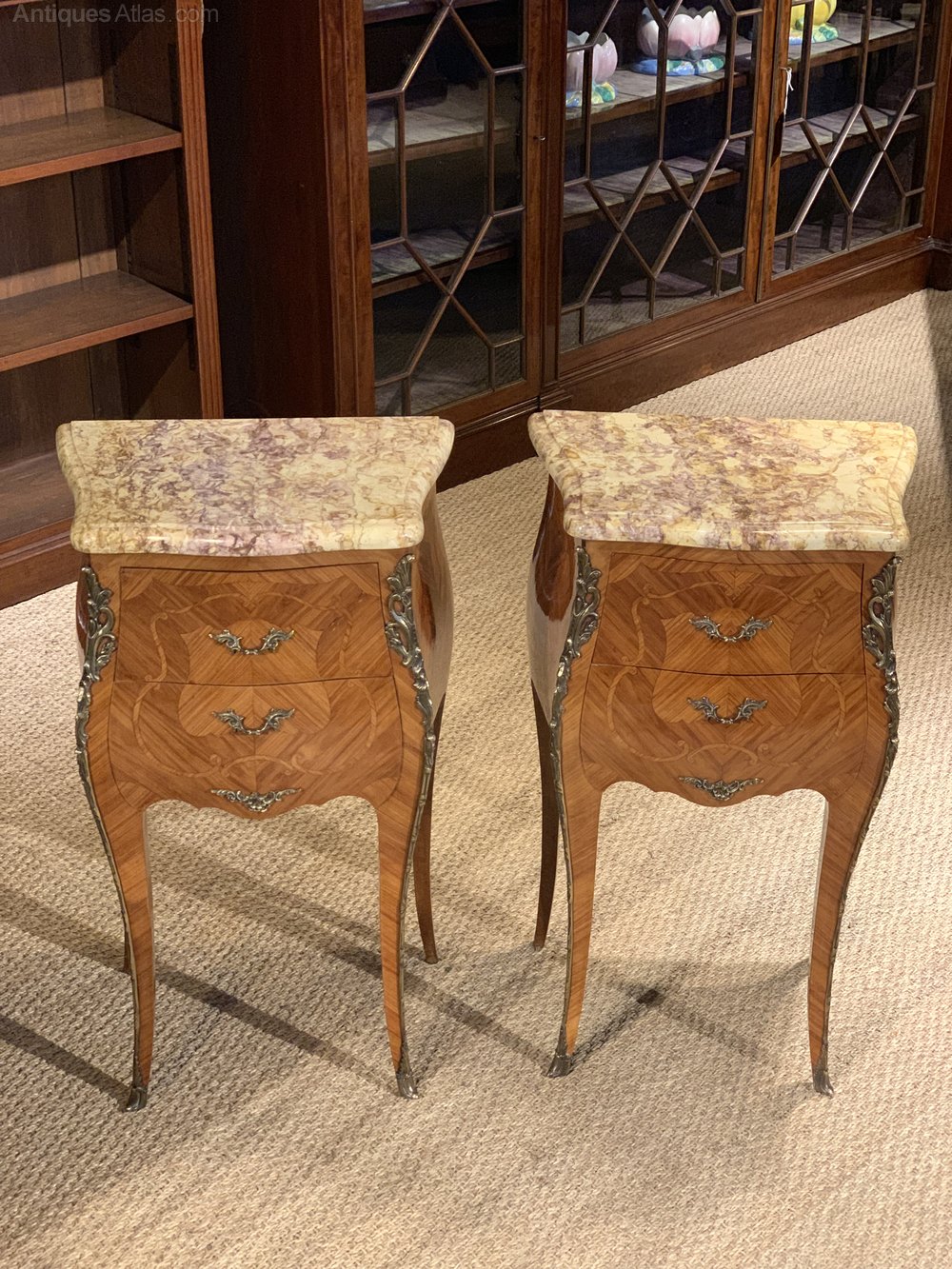 Great pair of marble topped bedside cabinets