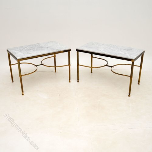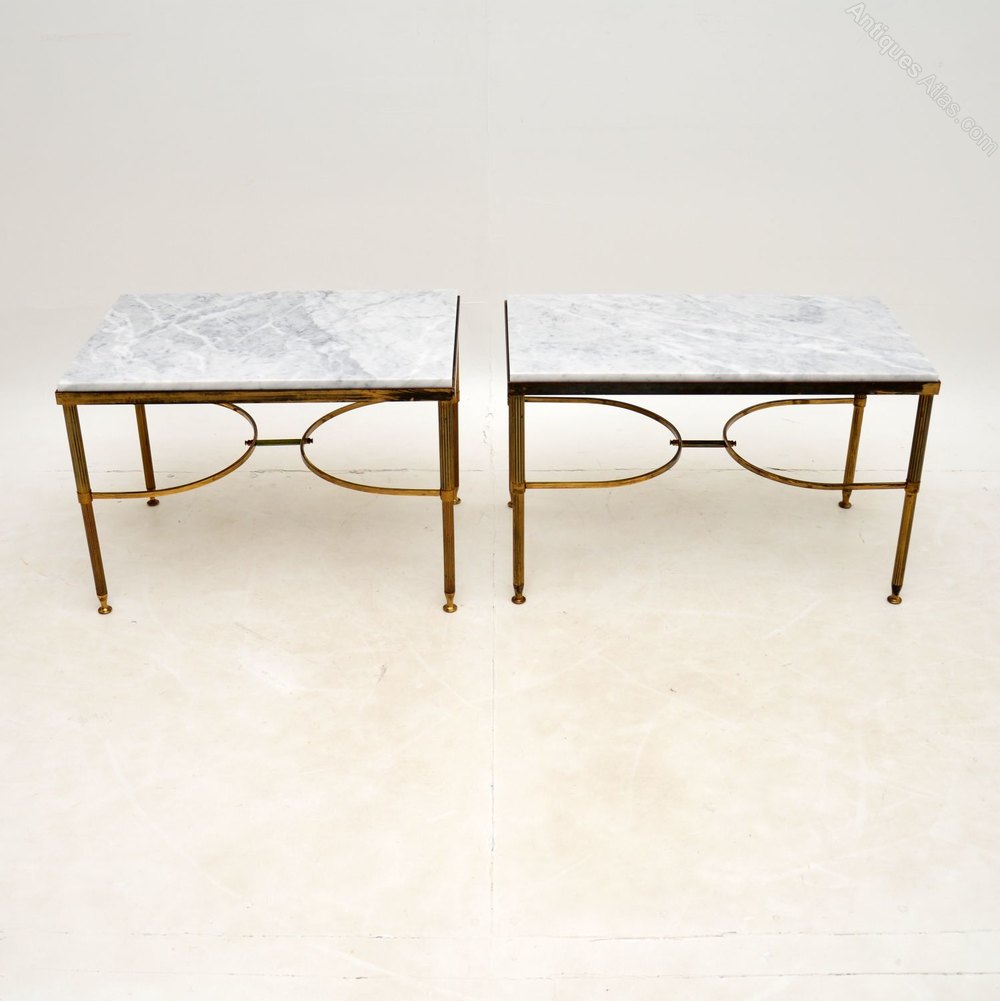 Pair of Brass & Marble Side Tables Vintage 1960's