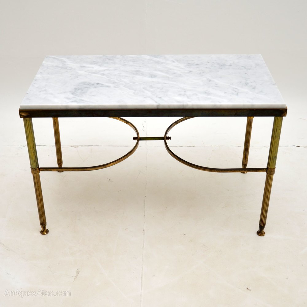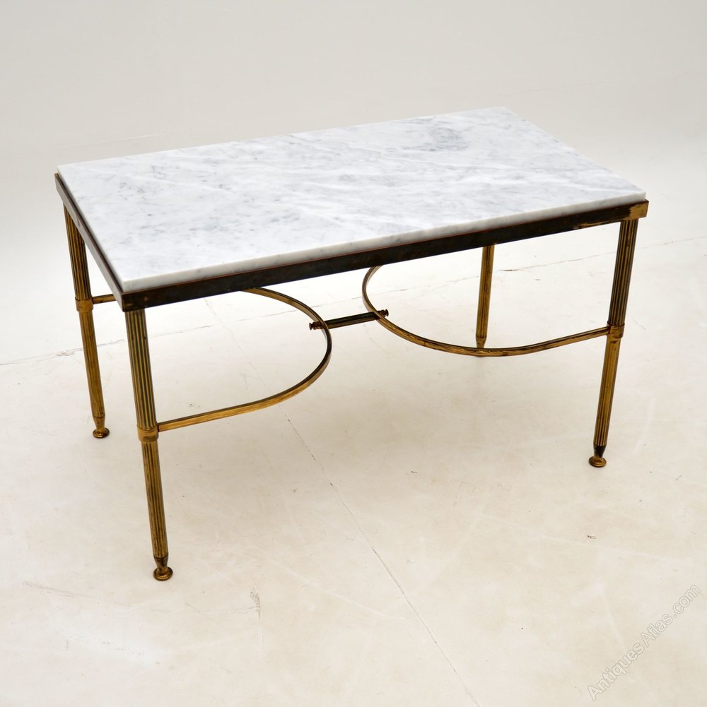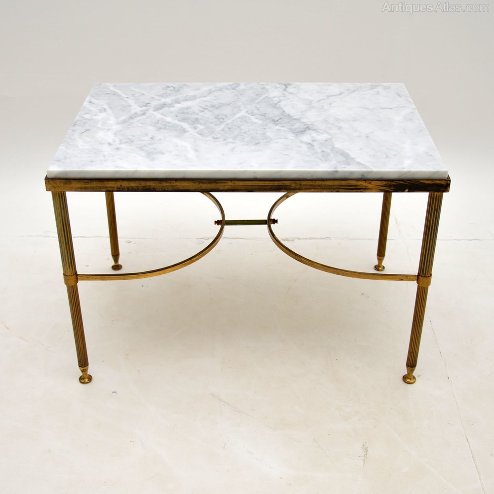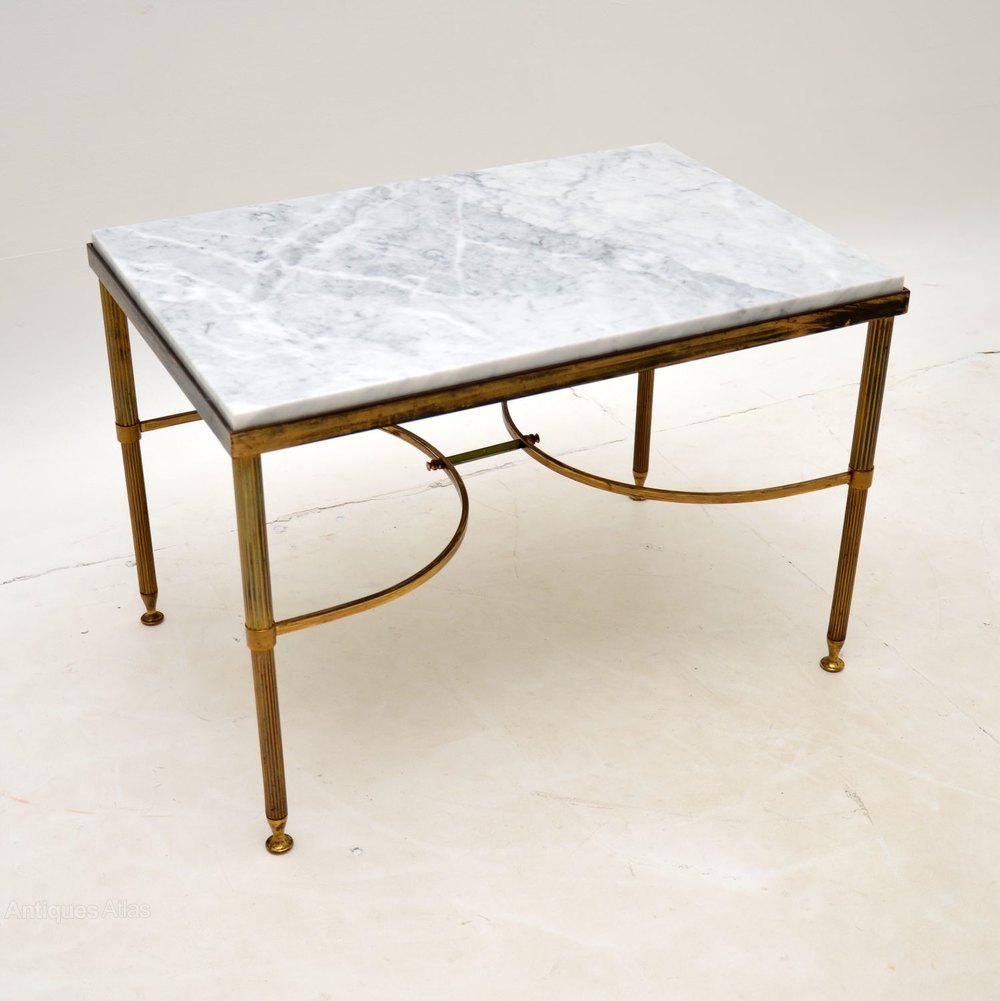 A beautiful pair of matching solid brass side antique tables with white marble tops. These date from the 1960’s, they were made in Italy.