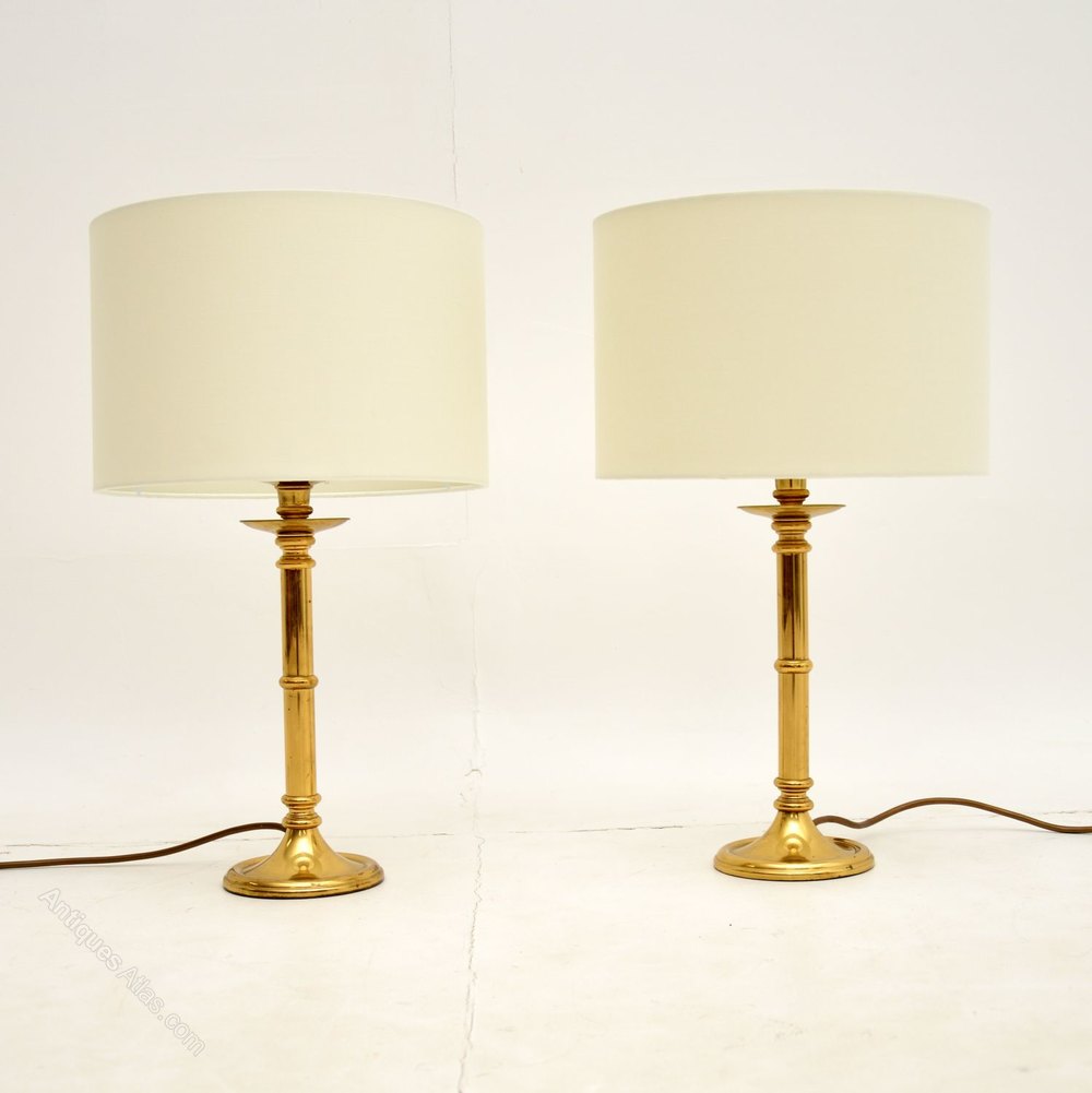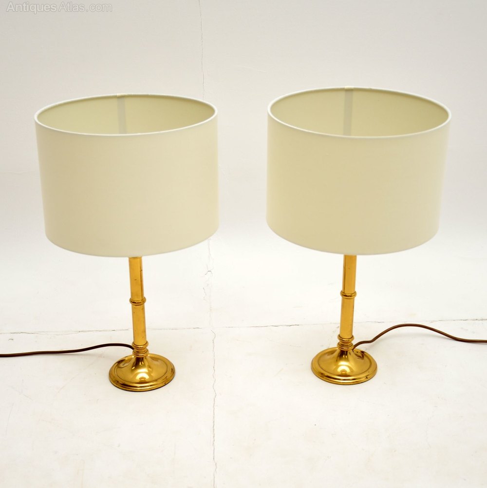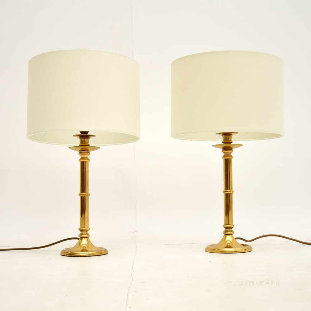 A beautiful pair of vintage solid brass table lamps, made in England and dating from around the 1970’s.