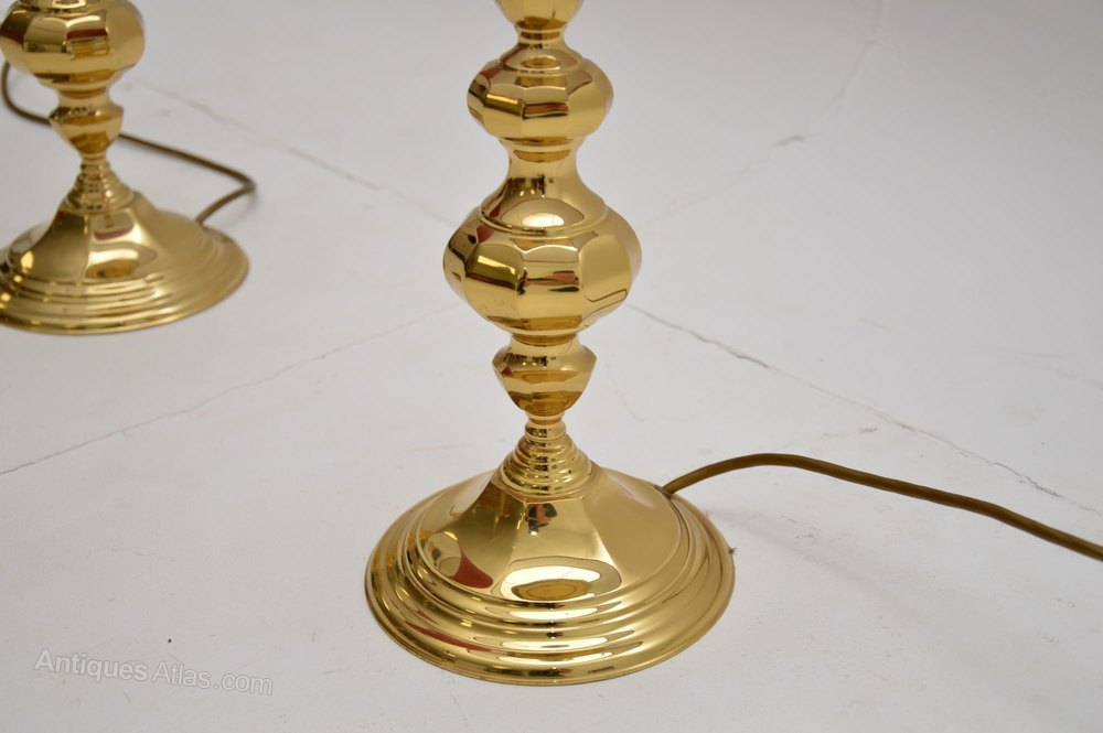 A beautiful pair of vintage solid brass table lamps, made in England and dating from around the 1970’s.