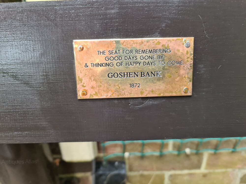 We have four of these identical benches, also available to purchase separately. They each have a brass plaque with different wording.