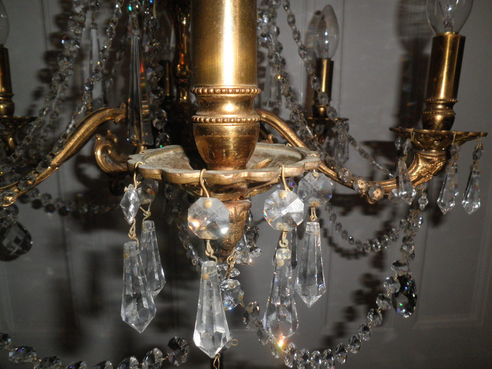 A French Gilded Brass 8 Branch Rococo Chandelier
