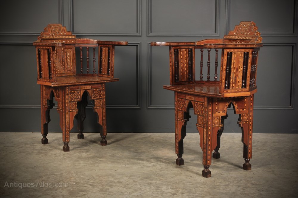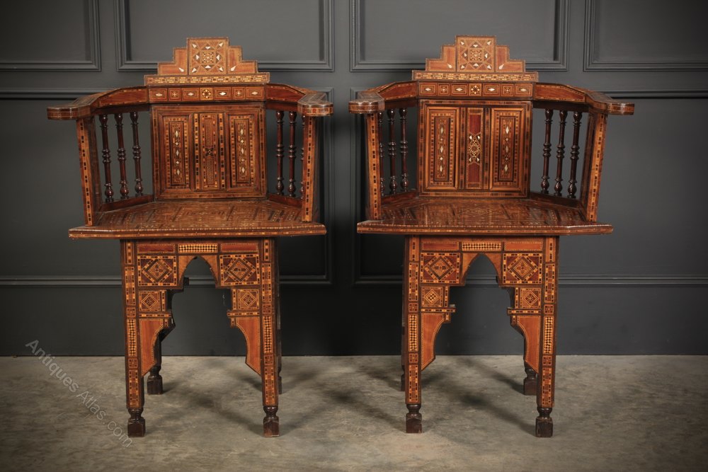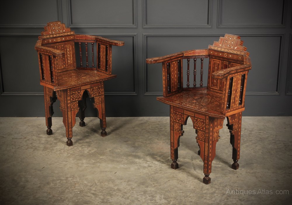 Pair of Damascus Syrian Moorish Inlaid Armchairs