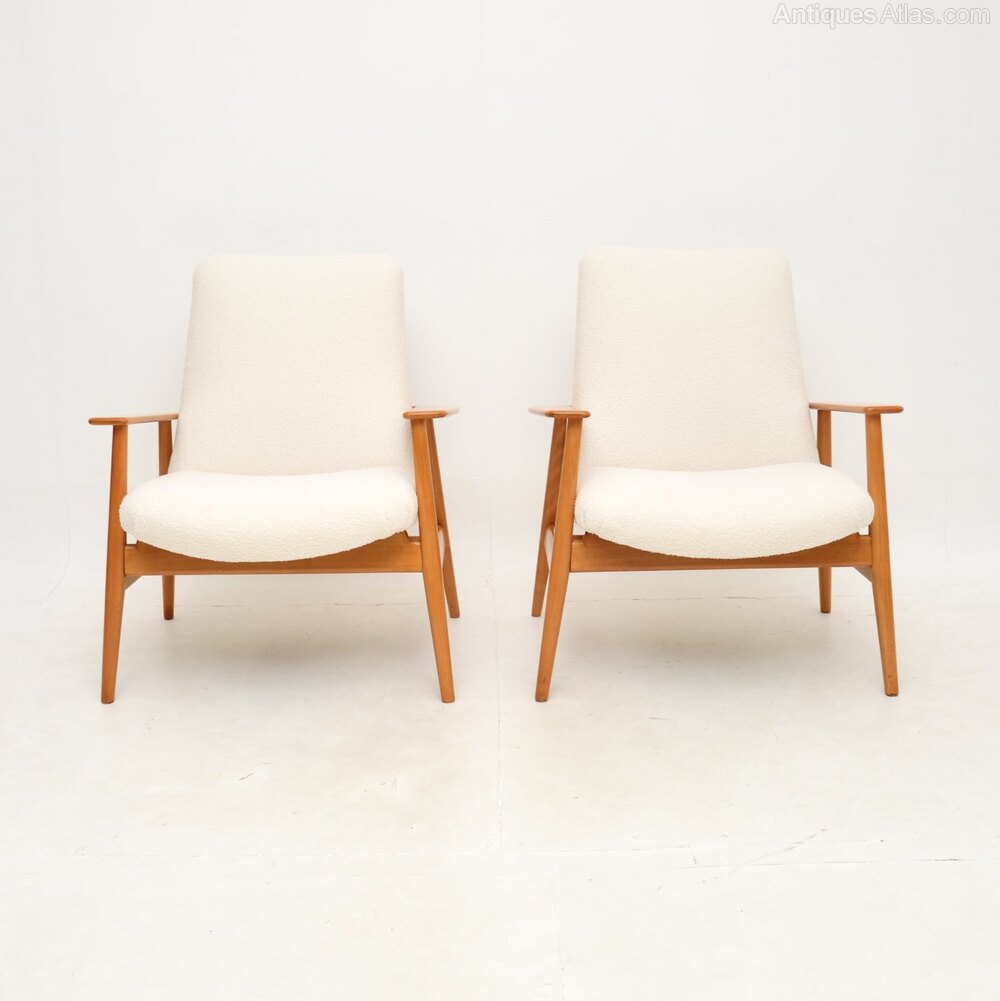 A stylish and extremely well made pair of Danish vintage armchairs in birch wood. They were recently imported from Denmark, they date from the 1950-60’s.