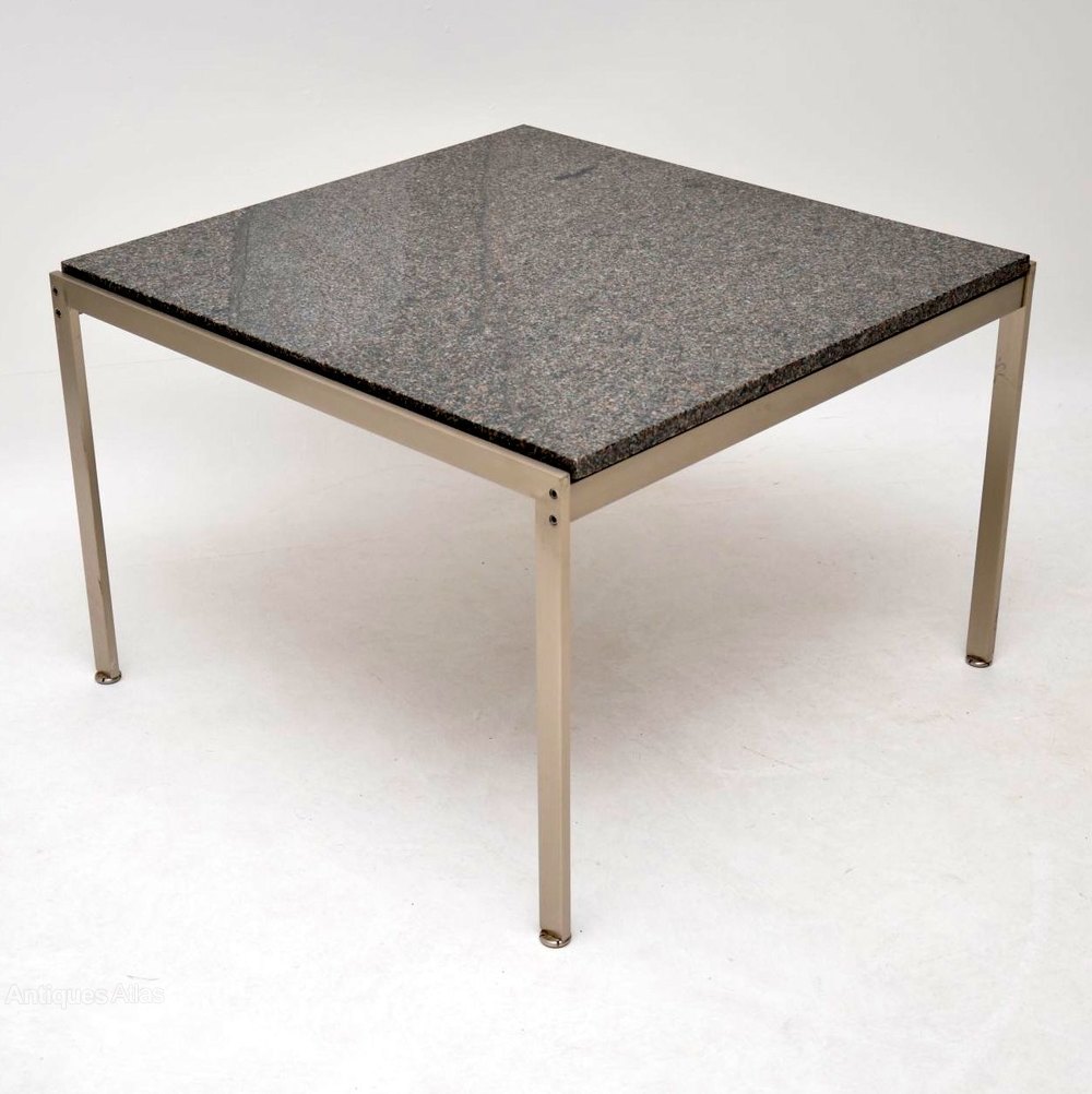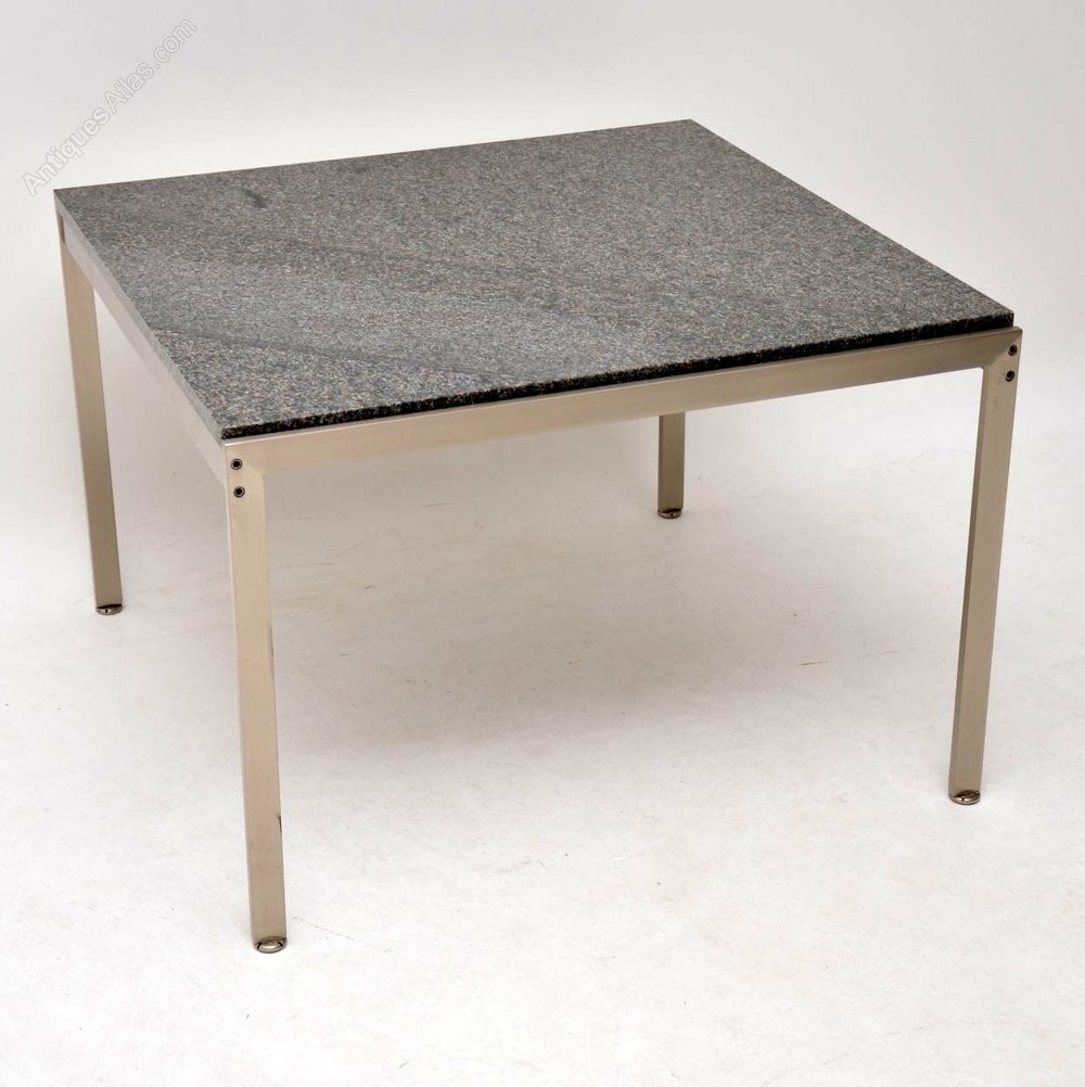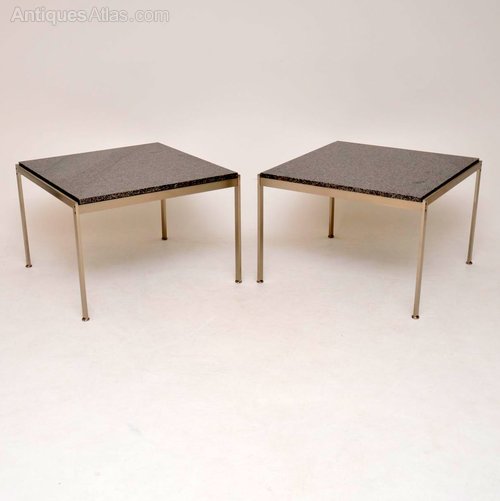 A beautifully made and extremely stylish pair of vintage steel antique tables with polished granite tops, these are in the style of the famous Danish designer Poul Kjaerholm. We’re not sure who made them, but the quality is absolutely amazing, these are really well made and very heavy for their size. They date from the mid-late twentieth century and the condition is great, with only some extremely minor surface wear here and there to the frames.