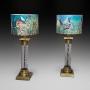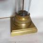 Pair of Early 20thC Brass & Clear Glass Electric Table Lamps with twisted glass stems and square plinth bases. - 12" diam x 29"h - - all lights and lamps have been rewired with authentic corded flex, fitted with either foot switch or finger clicker switch and are Pat tested